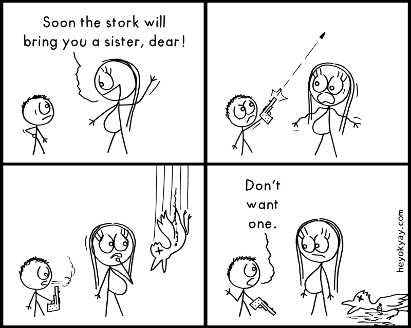 xD give it time kiddo should warm up t it. Poor innocent stork. ( my bf and I were worried when we discovered we were having another baby) cuz for the longest time our 4 year old was strongly against a sibling. Now he kisses and talks to my belly and even picked out the baby's name XD