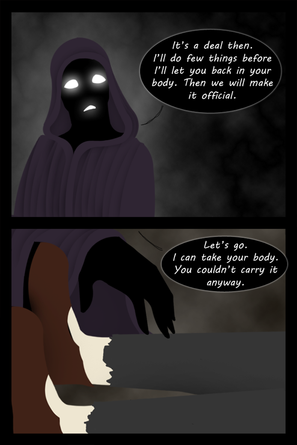 I still hate drawing hands. It makes it easier that the Grim Reaper is at tme moment just a silhouette thingy but I still hate it.