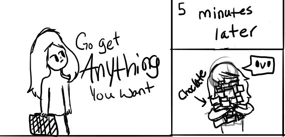*she runs at you and takes the chocolate and makes chocolate cupcakes and gives them to u*
