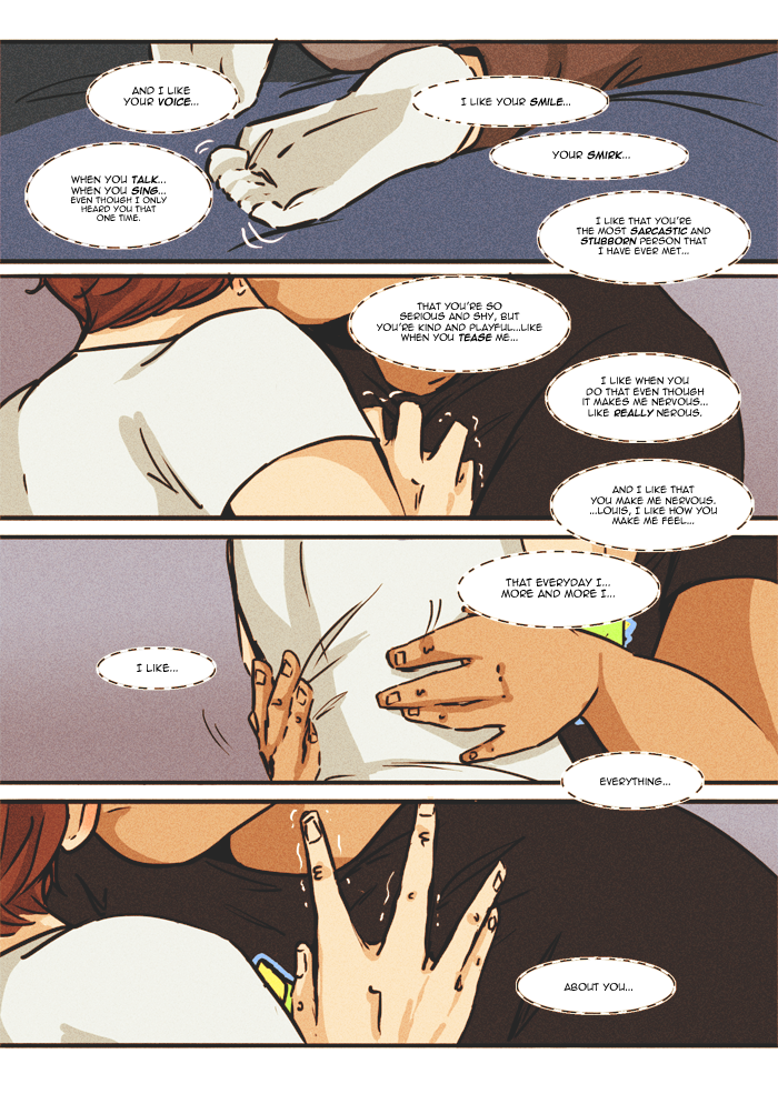 Oh my god, this is such an important page because Louis is someone who doesn't like himself and then we have Daniel practically telling him everything there is to love about Louis (or at least what he loves but it's pretty much everything) and Daniel is basically accepting everything about him which no one has ever done before because what everyone else sees is this perfect persona that he goes by so he isn't hated. This is just a beautiful and emotional page that I had to be serious in this comment and not make light of this.
