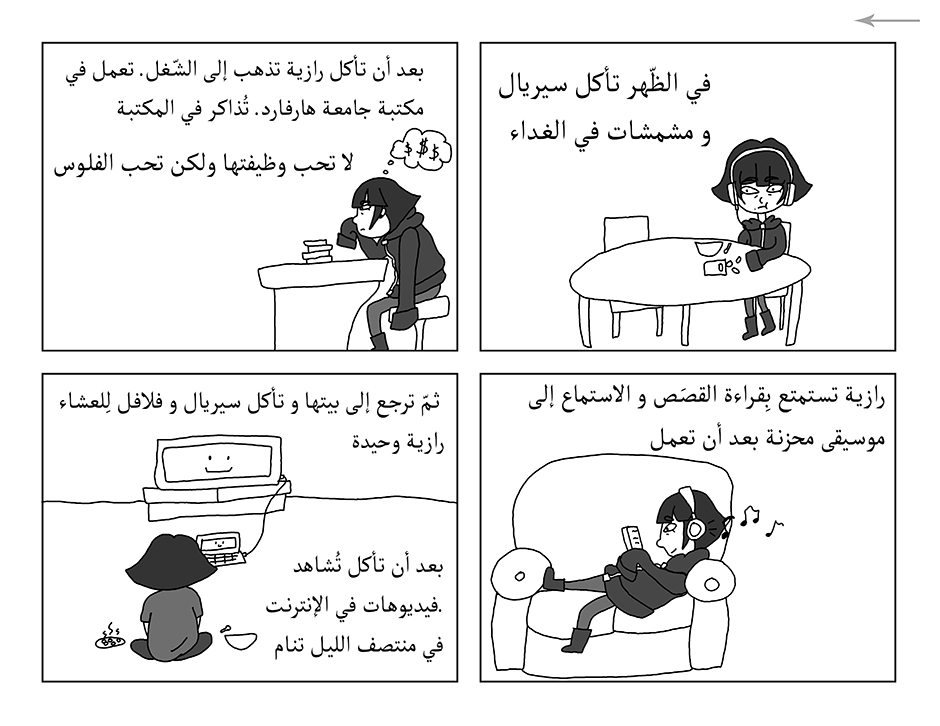 A short comic that I wrote for an Arabic class project about a lonely college student. (English translation in the comments.)