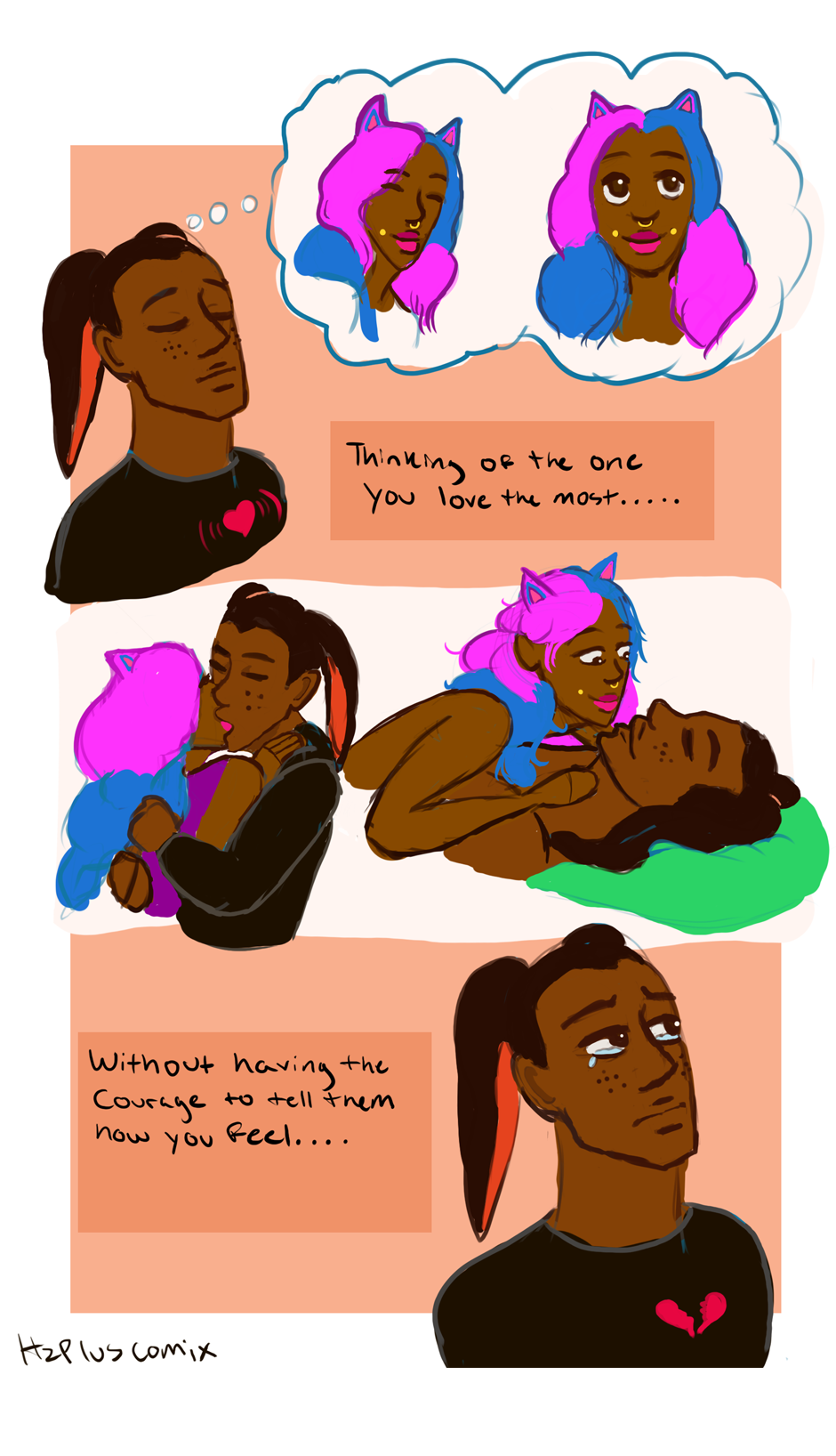 A lil comic dedicated to Oliver (the bunny boy/ninja) unconditional love for Desi the cat girl.