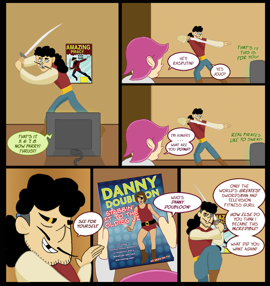 The swashbuckling misadventures of Rasputin, Jojo, and Otto the octo-pig aboard the aptly named Miss Quito in a world inhabited by peculiar creatures, floating islands, and sky pirates.