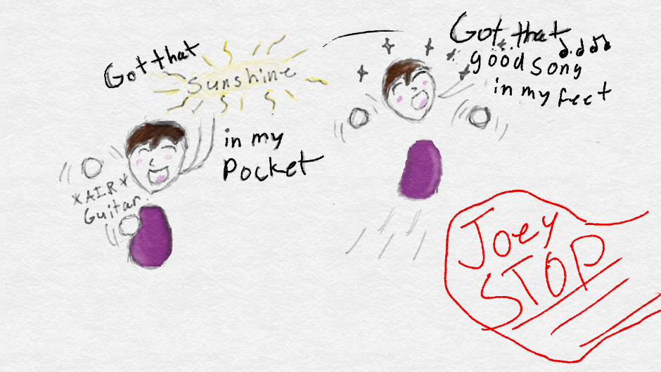 Joey is at it now and is determined to have that good song in his feet!