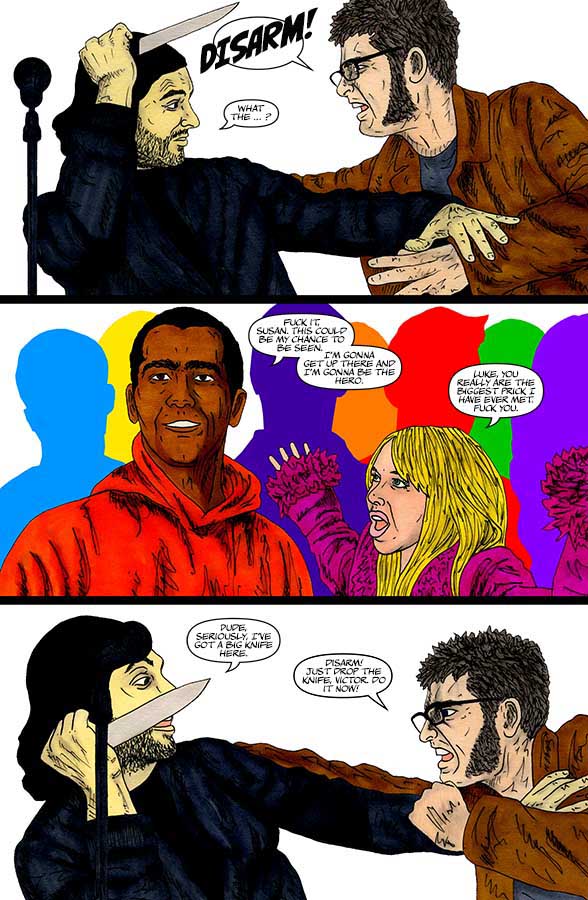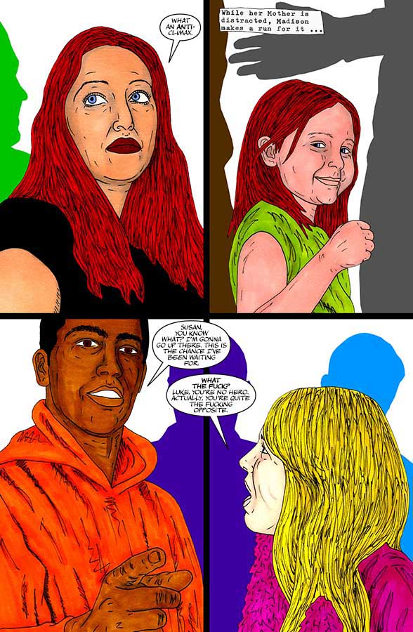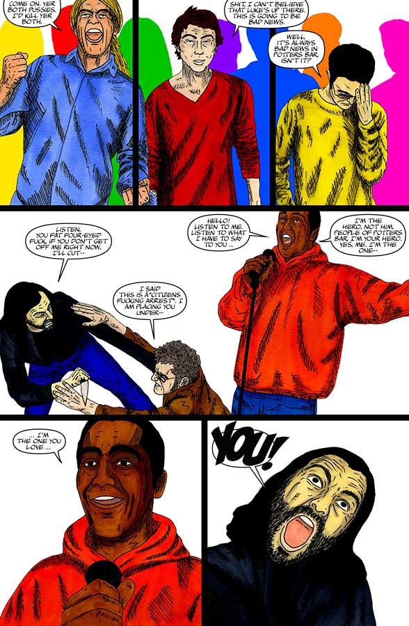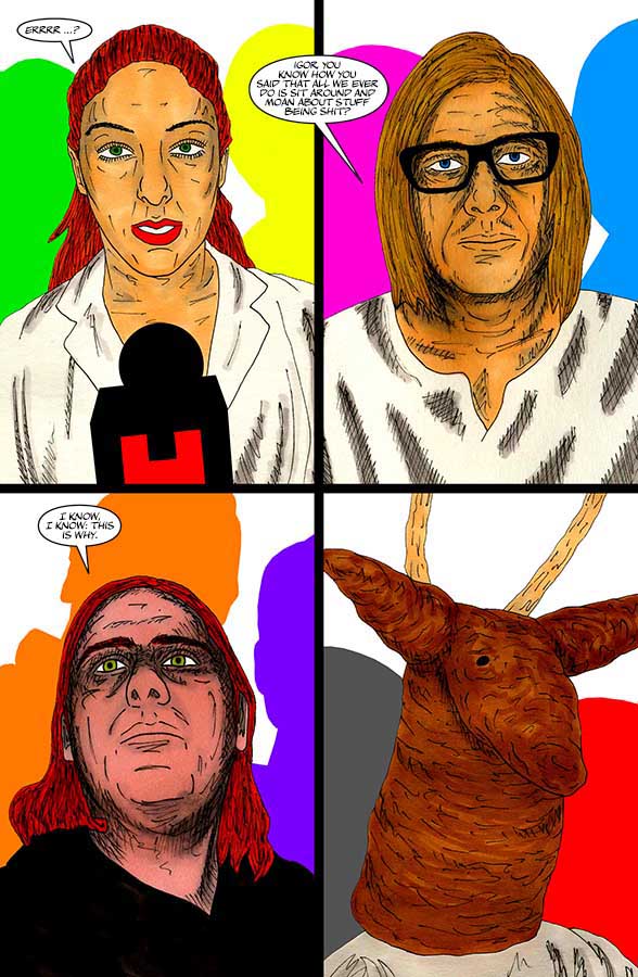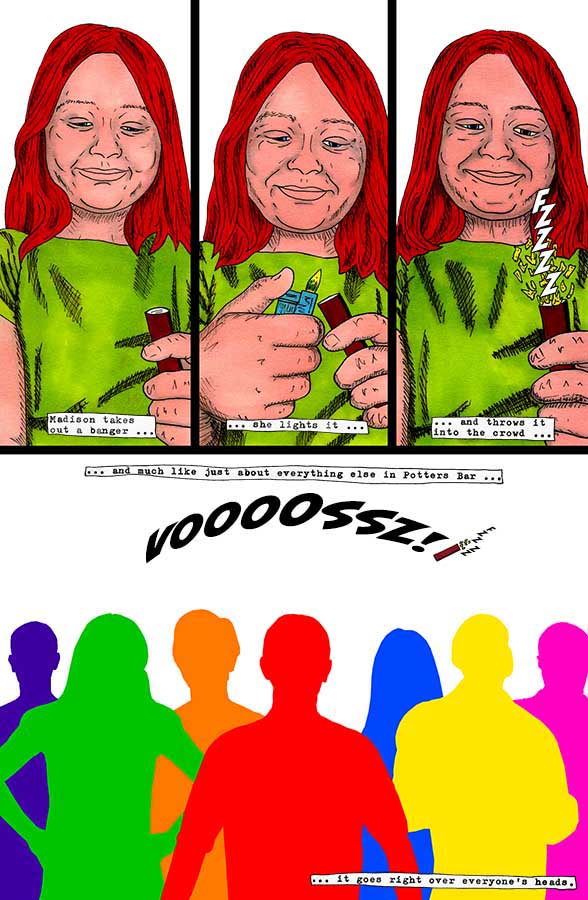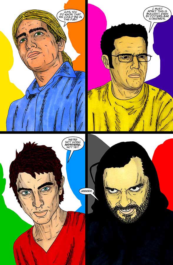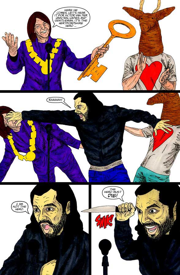 “Nothing-Men” is a Surrealist super-hero satire that takes place in the small sleepy Hertfordshire town of Potters Bar.