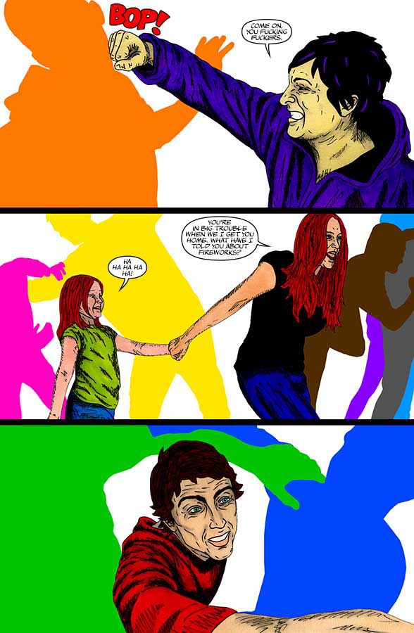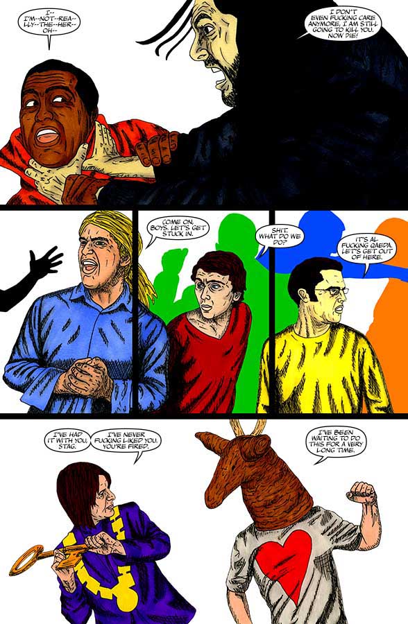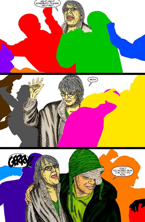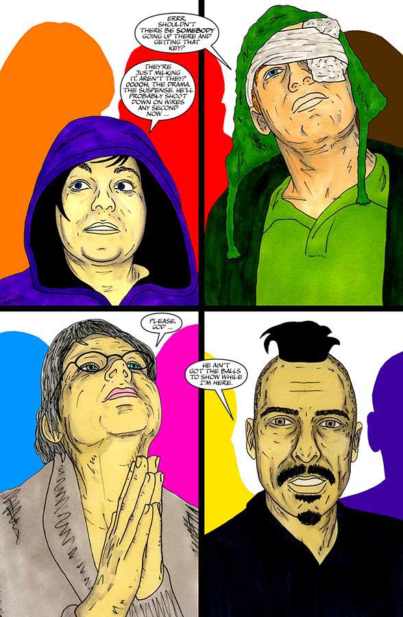 "Nothing-Men" utilises a wide range of unconventional materials that you wouldn't usually find in a comic and incorporates all kinds of found/everyday objects. Throughout "Nothing-Men", a range of different artistic techniques and approaches are employed.