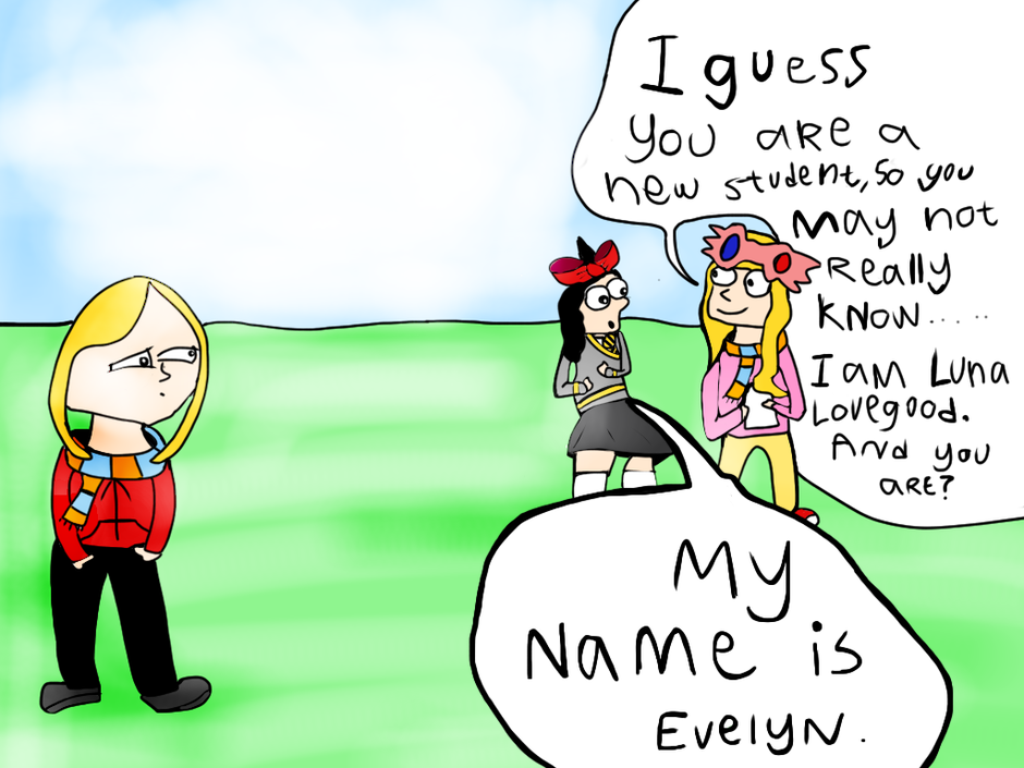 Evelyn Roshaug and Sophie Lunbee are students at Hogwarts. Evelyn is a hufflepuff and kind of a dreamer and outsider. Sophie is a ravenclaw.