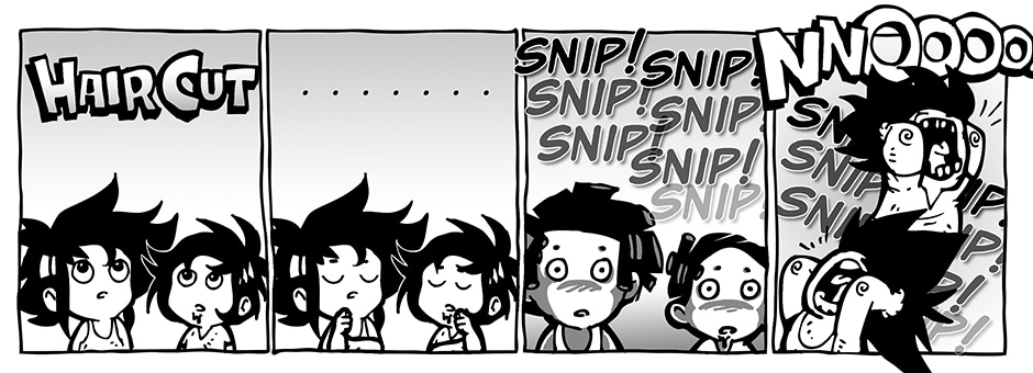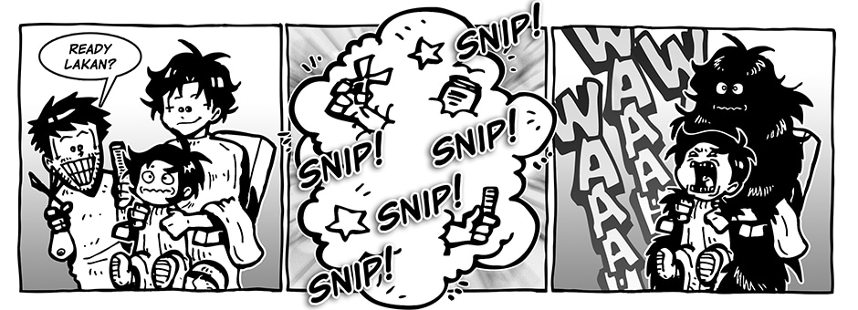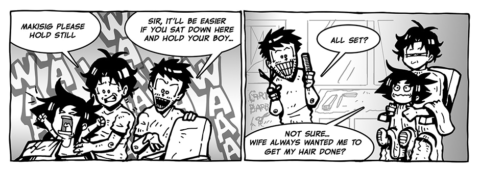 That time when the kid's hair grew long but they are not used to sitting on the barber's chair. It's one of the challenges parents go through when kids are growing, is keeping them still while having their haircut.