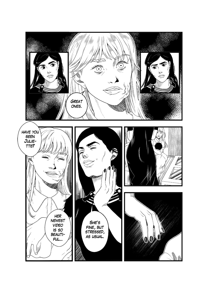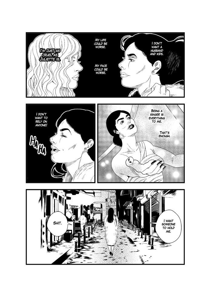 Ooh y por fin conocemos a la integrante que faltaba, parece mona <3 Me han llegado mucho tanto la última página como la viñeta en la que dice "I want someone to hold me", qué penita ;v; /
