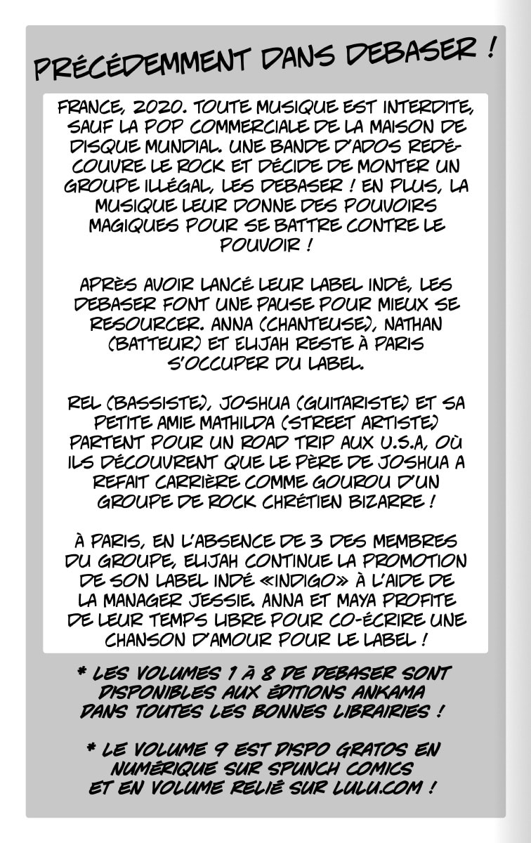 Si vous aimez la BD et souhaitez compléter votre collection, vous pouvez acheter la version reliée (enrichie en bonus) par ici http://www.lulu.com/shop/raf/debaser-9/paperback/product-21922754.html