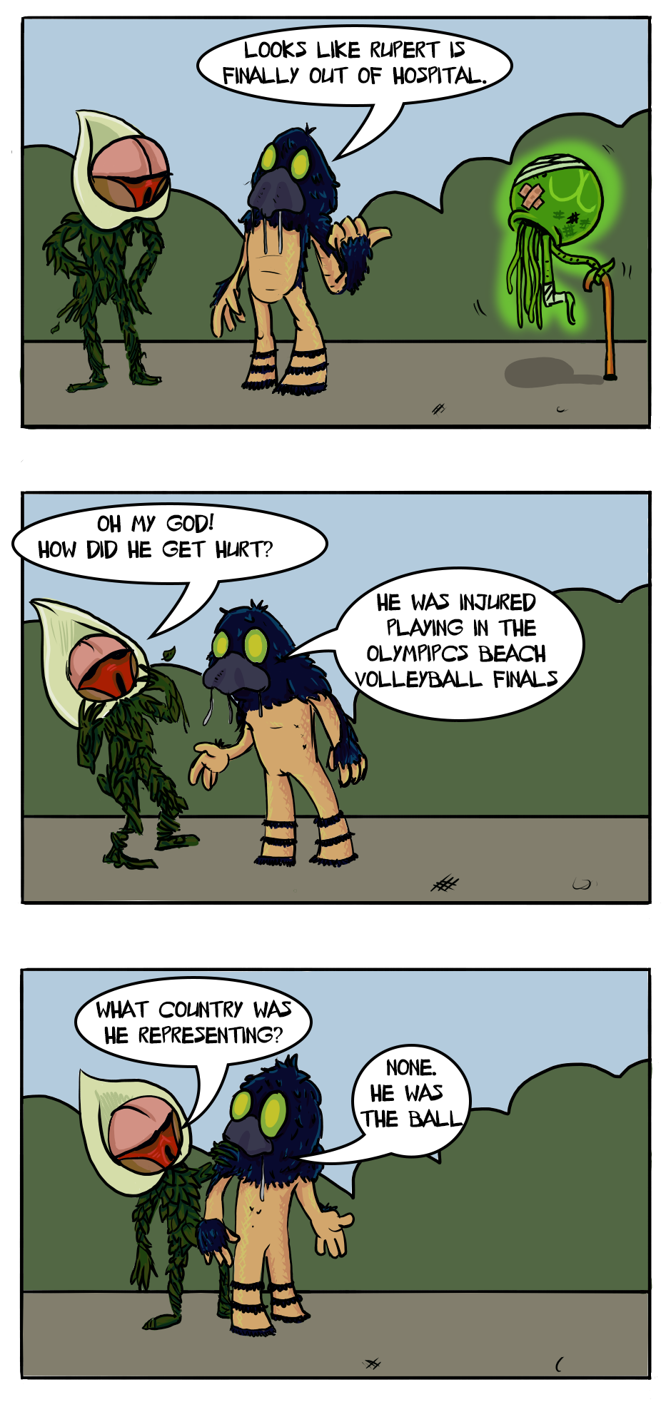 what happened to Rupert on frame 2 & 3?