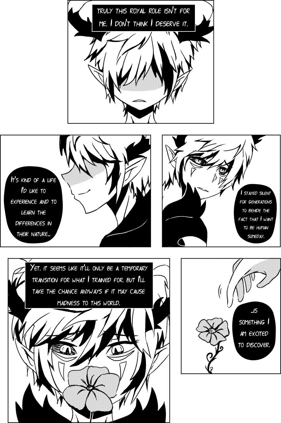 Last paragraph translation (my interpretation): I will be the evil kid you want me to be, but it will only be for a short time. Since you're giving me this opportunity to become human, I will make it worth it despite being hated or rejected by my own race.