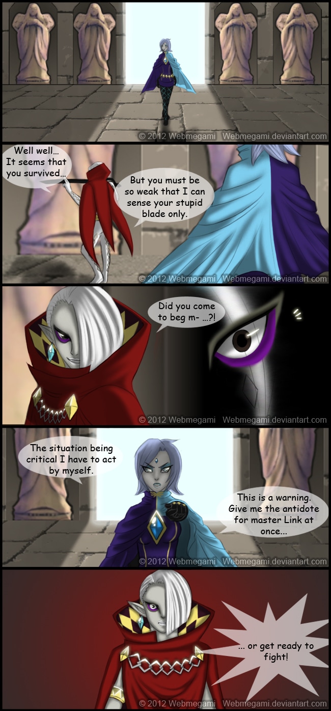 Link and Fi have been in mission again and had to face Ghirahim once more. Unfortunately during this fight Ghirahim used a more vicious weapon covered with poison. Same if Link was able to hold on, a single cut from this weapon contaminated him and now his life is in great danger. Obviously not in the condition to act by himself, Fi decides to intervene…