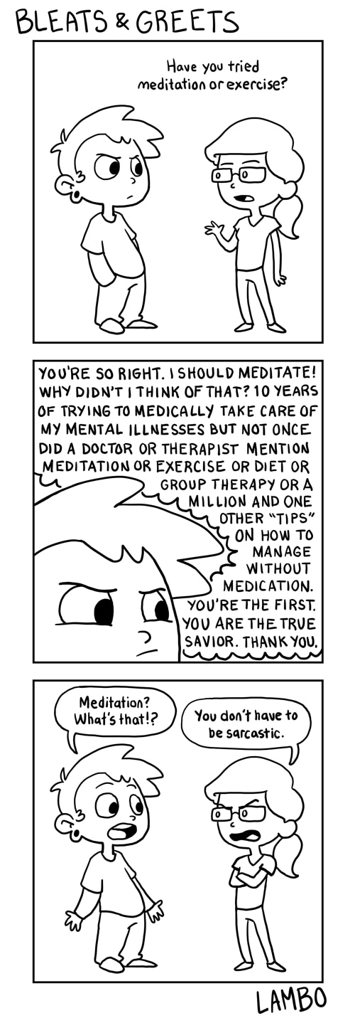 I find it amusing that you have a generic face to represent the thoughtless masses. Very clever. And my goodness, do I empathise on this topic. It's sweet that people want to help but unless they know you well or you come to them asking for advice, they're bound to make fools of themselves.