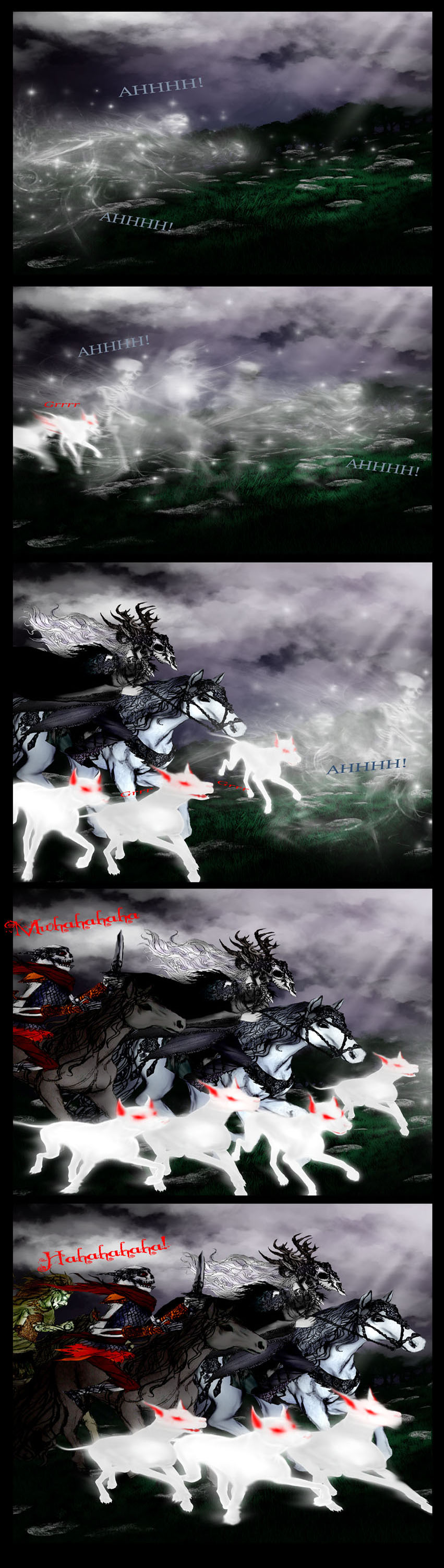 It's been awhile since i've drawn horses... or painted up skeletal ghosts and spook spectral hounds in photoshop. now to start work on the next page.