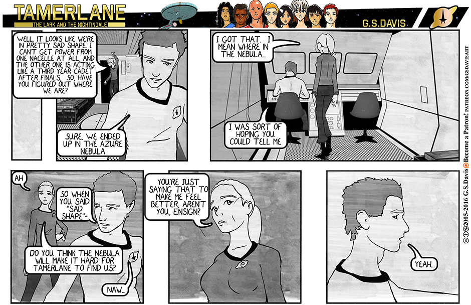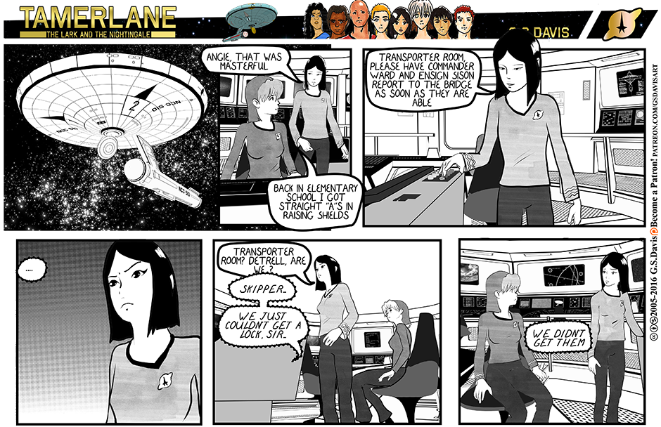 The Adventures of the Federation Destroyer "Tamerlane" (NCC-510). Based on the premise of "Star Trek: The Rest of the Federation" This story centers around an old warhorse, "Tamerlane" which is out of place in the peaceful 23rd century world. Her captain, Julienne Cochrane is also rather atypical as a captain goes, which makes them a good match.