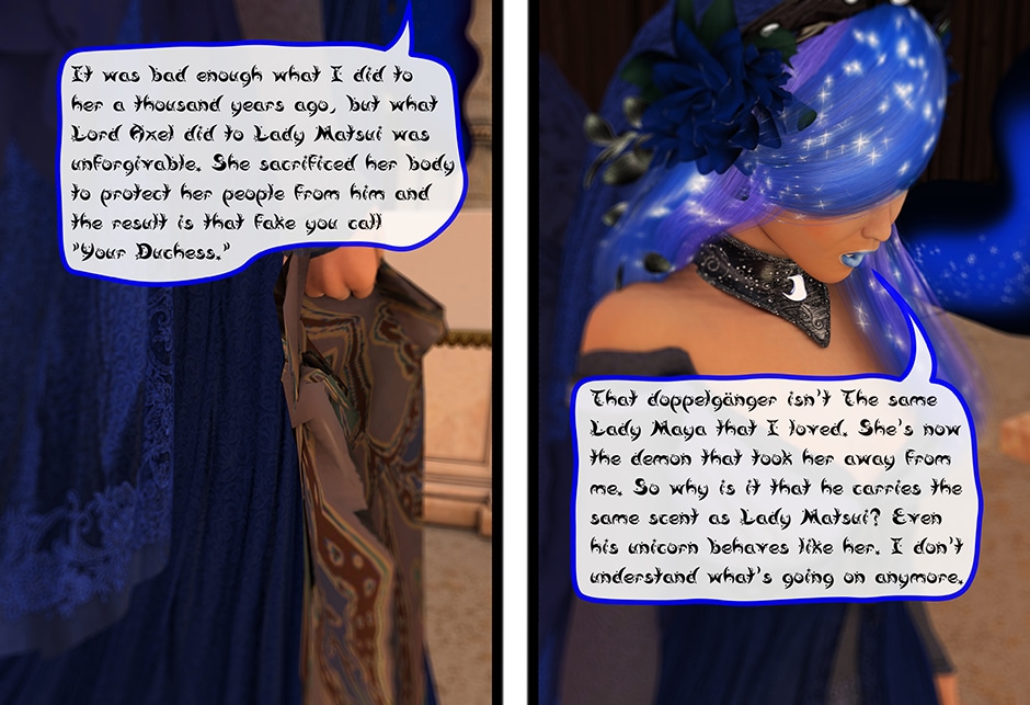 After Confronting Princess Luna in one of her dreams. Lady Maya Doi must now face against The Moon Goddess of Equestria herself and try to convince her that she is the reincarnation of her long lost companion. However, the more the two of them fight each other, more of their memories will come to surface clashing against one another, causing both of their mental stability to deteriorate. This is the continuation The Lunar Eclipse Act I.