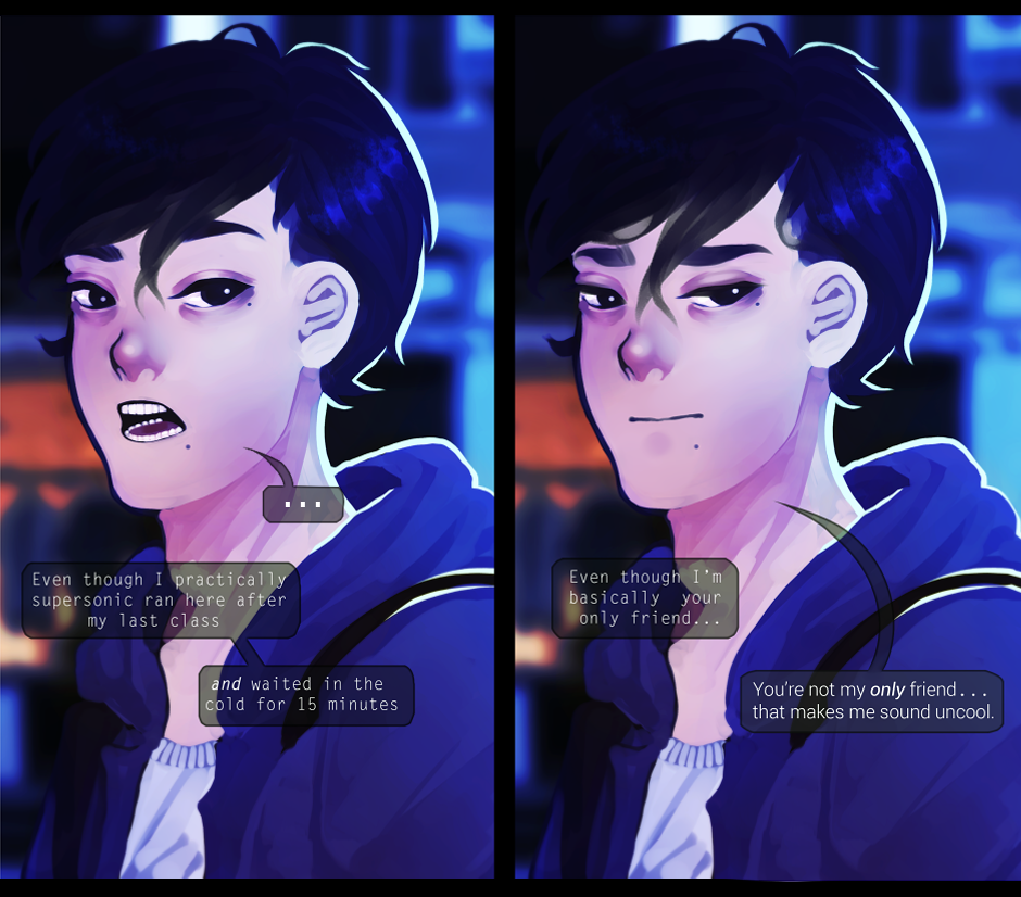 "You're not my only friend..." Um boy so far as I know he is the only living being close to you at the moment. I see no proof of your other friends, so admit that he is your only friend. Fight me on this (งಠ_ಠ)ง