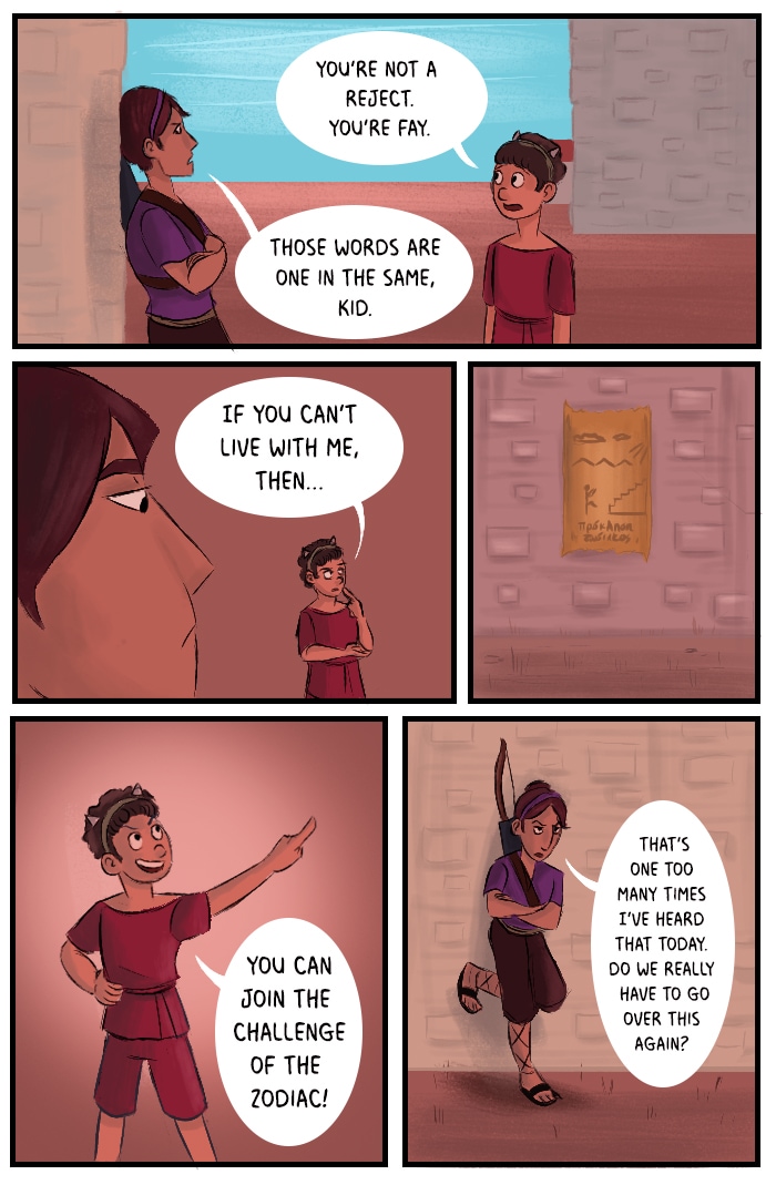 Challenge of the Zodiac is a webcomic about a world in which zodiac signs influence people and culture. The famous 'Challenge of the Zodiac' is held every 12 years to honor the Maker and his Circle, but this year it seems like the heavens have a much bigger plan for those who live below.
