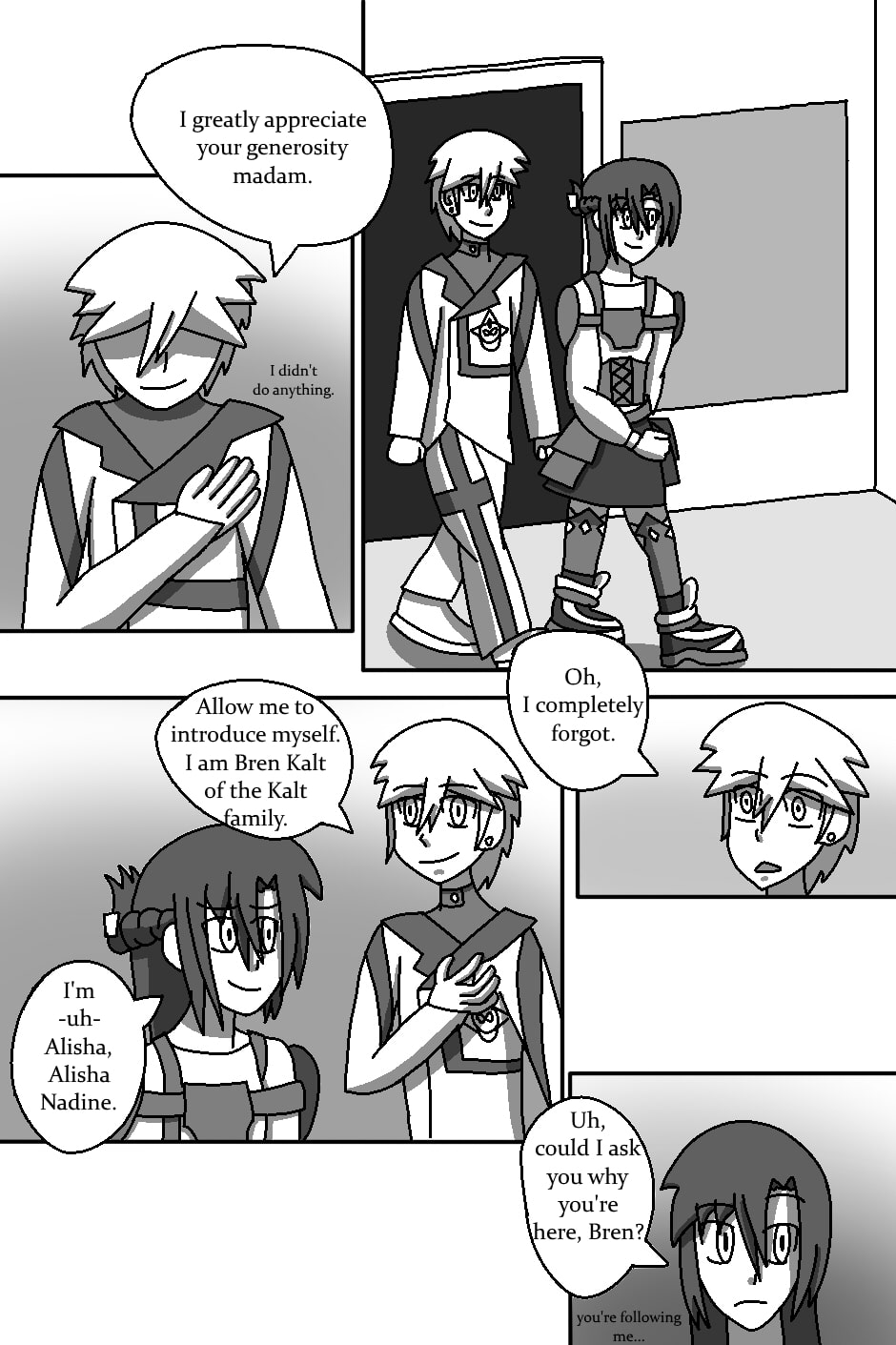 Anyway, I tried using my new found binary brush for this page. I've been using it in my actual artwork recently so I thought I'd use it here. I'll probably go back to using the pen tool like I did for the rest.