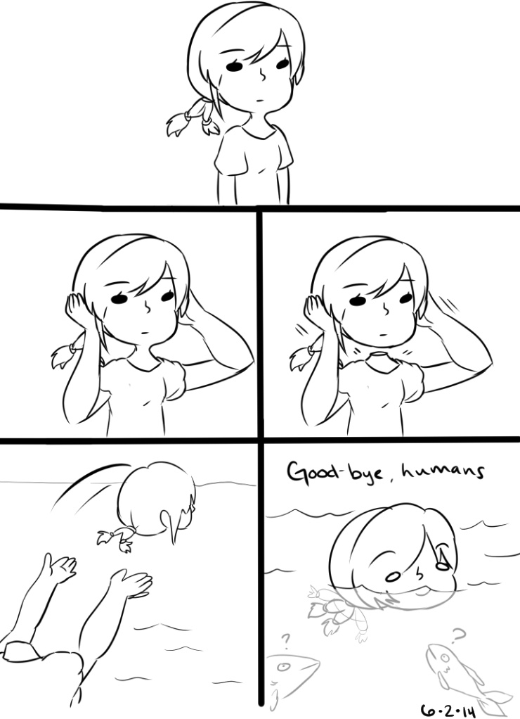 I gave my ponytail pigtails. They looked like a fishes tail