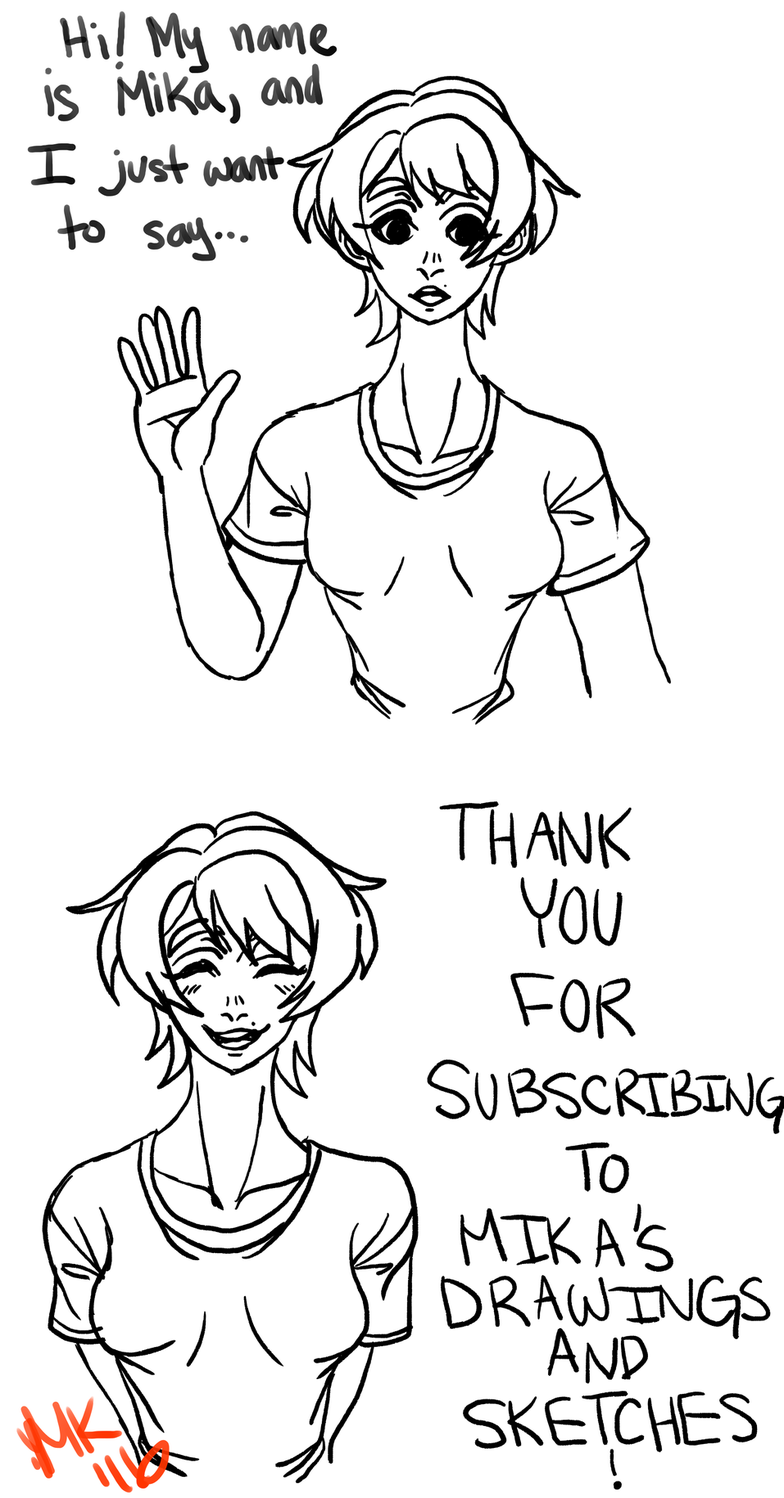This is a little "comic" I drew just to say thank you for subscribing to my series :D! I really want to say thank you to all those who have subscribed, liked, and commented on my artwork! It appreciate it so much! To be honest, when ever one of you does any of things, it makes me happy to be noticed by you ^-^! Anyway, I just want to let everyone know that since I want to begin practicing digital art some more, I might do some streaming and that will be announced on my wall! Feel free to come and chat with me! Also, when we reach 30 subscribers, I might do a Q & A, so please also look forward to that :).