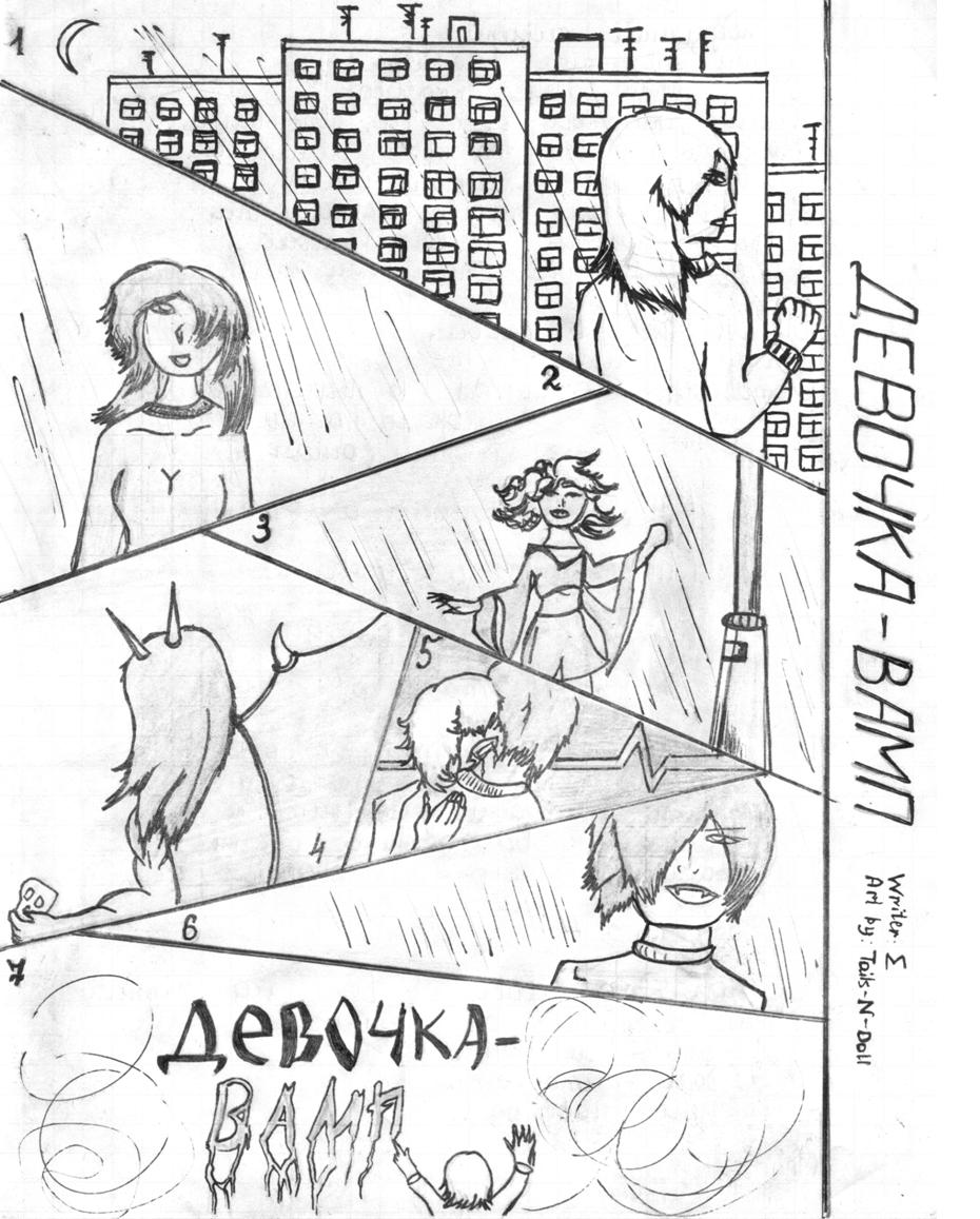 One girl walks around the city. It was a rainy night. She goes home after an evening in Musical school. She was alone on the street. She saw a woman. She stands over a man. It looks a bit strange. She comes closer and she understands that that girl was a vampire and that man was a dinner. Vampire saw her. The little girl was the next victim of that vampire.