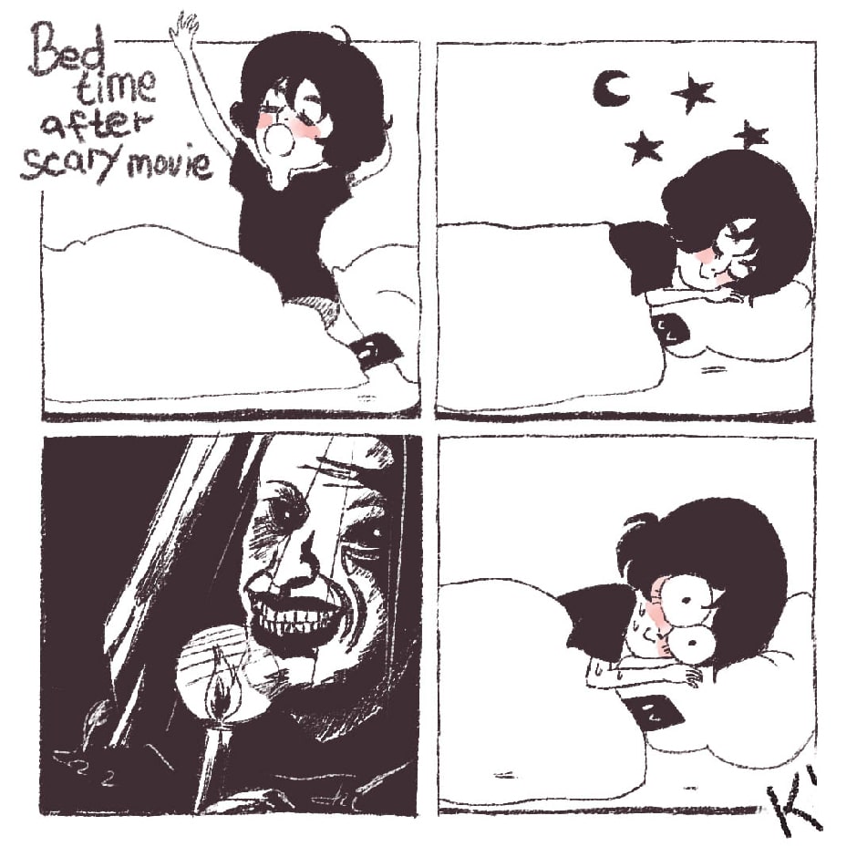 going to bed after horror movie
