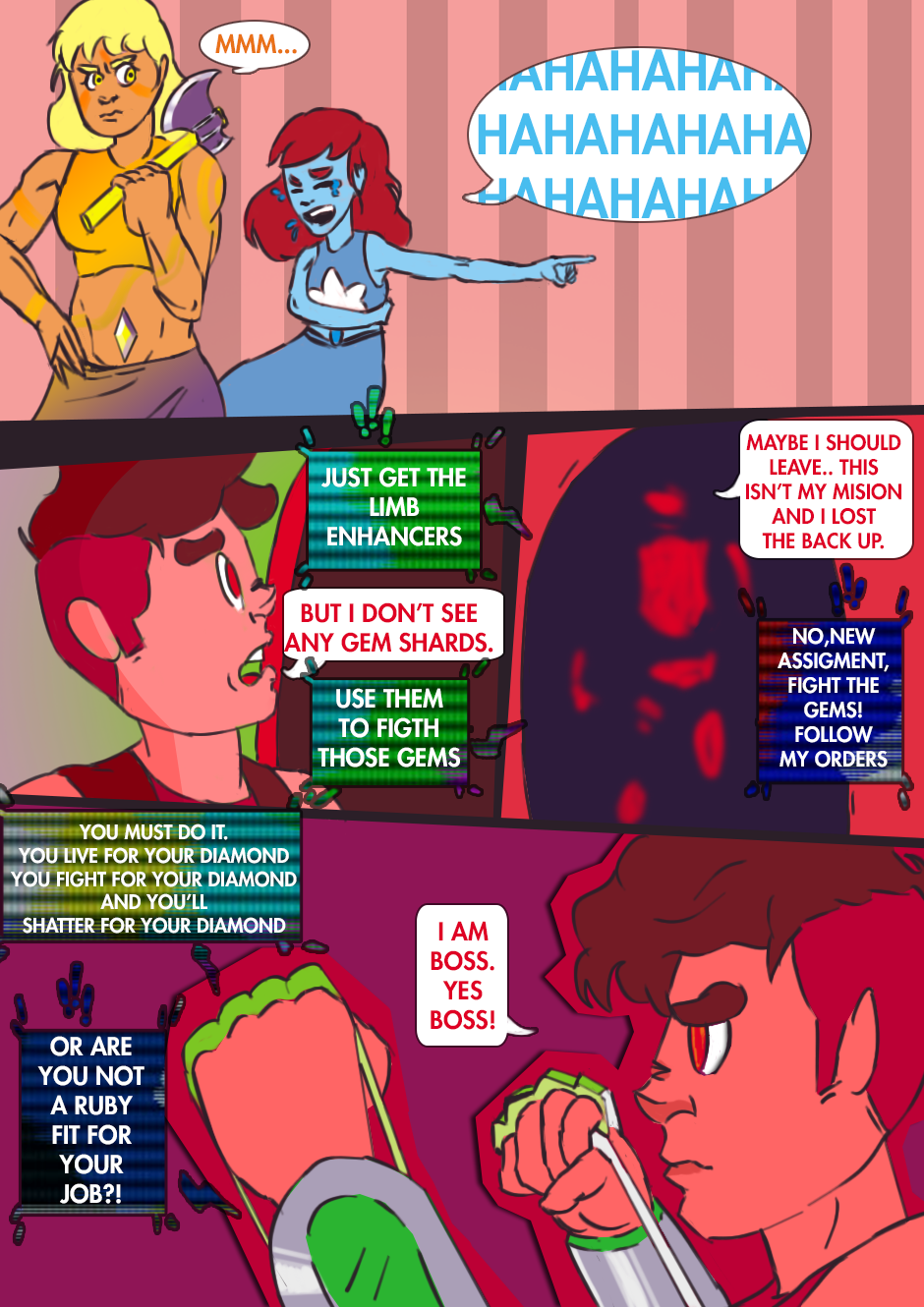 Is this going to lead into a figth? Quartz Rebel Soldier vs Ruby DF-22 Now we are talking Devian art link: http://dragongirlzx.deviantart.com/art/Gemenemies-Crash-Landing-Part4-631542817