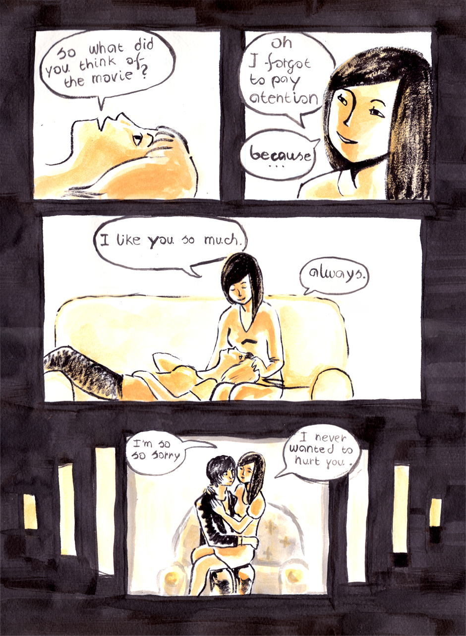 I got pretty much every one of my relationships about the same way, then wound up having it end at some point b.c I'd strained and tested them too much. I did say I dated an ass before on a previous comic, but tbh I am the worst person I know. I think it could be both a good and a bad thing to be hearing the same things, with the only real good thing being that eventually you'll meet someone who doesn't hurt you/doesn't get hurt by the same or similar words and actions, and it will actually be kind of amazing.