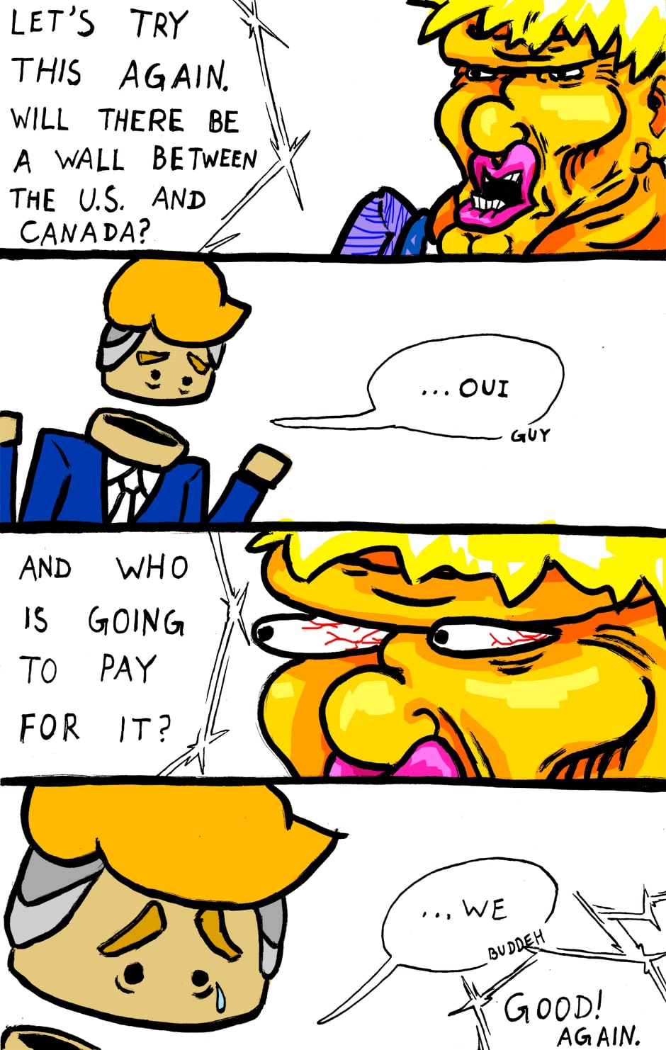 Yes, we Canadians predicted Donald Trump years in advance, it was the conservative party (the republican equivalent) who got the tax payers to pay for it, but no problem, so long as you ask, we will try our dang hardest to make it happen, parden my potty mouth.