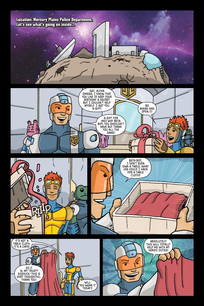Join our hero Sgt. Alpha Omega and his loyal sidekick, Beta Boy as they roam the universe; saving one planet at a time.