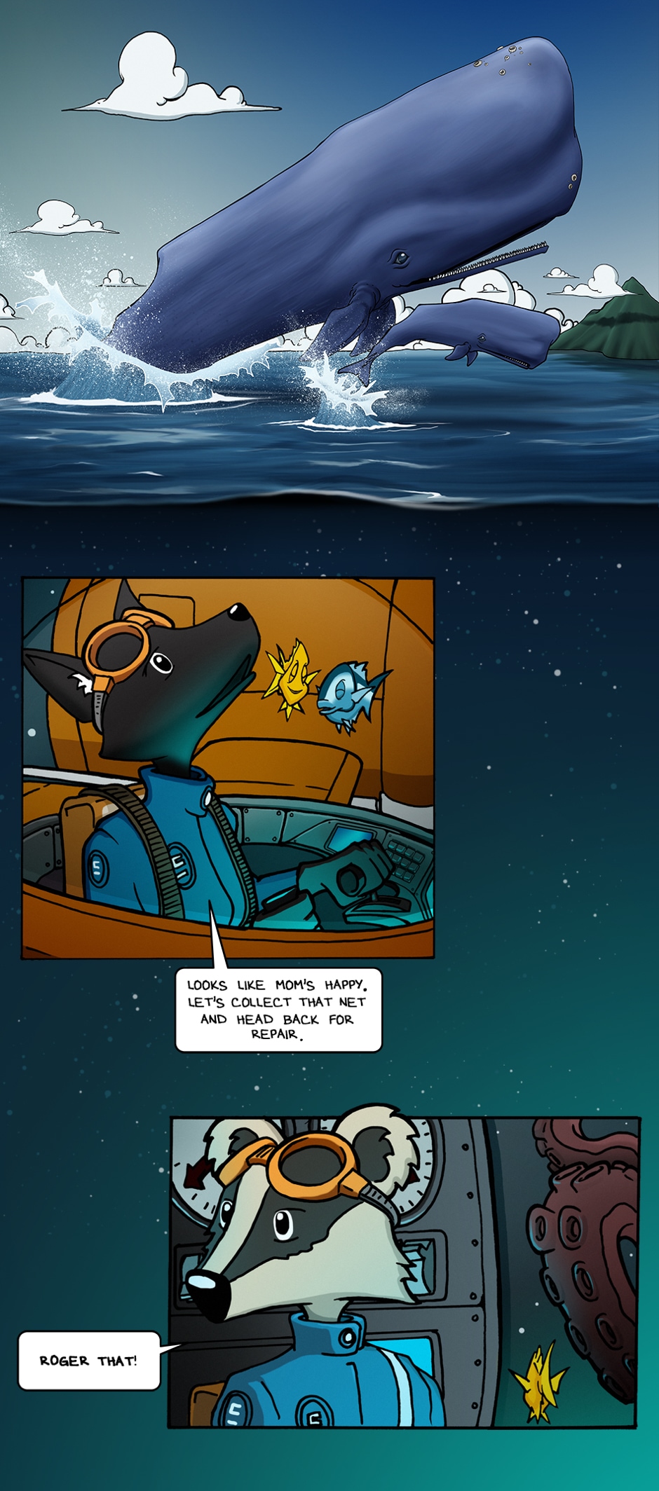 Little later than usual due to the holiday. Another double page spread that need some restructuring. I actually prefer this layout for pages 10 and 11 than what I have for my print version. May have to consider going back and giving it a second look. Things are about to get a bit entangled for the crew of Deep Dive Five...