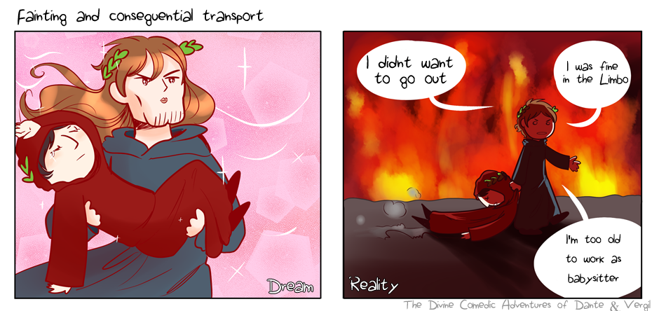 Ever realise that Dante might be missing a large part of Hell because he fainted? What if there's something he totally missed because Vergil dragged him past it? I mean, "Stupid man faints again. I am not showing him the people who talk in the movie theatre! We're skipping right over that so I can get back to Limbo with all those other poets and we can formally kick this guy out of our group! It'll be a 5-0 vote!"