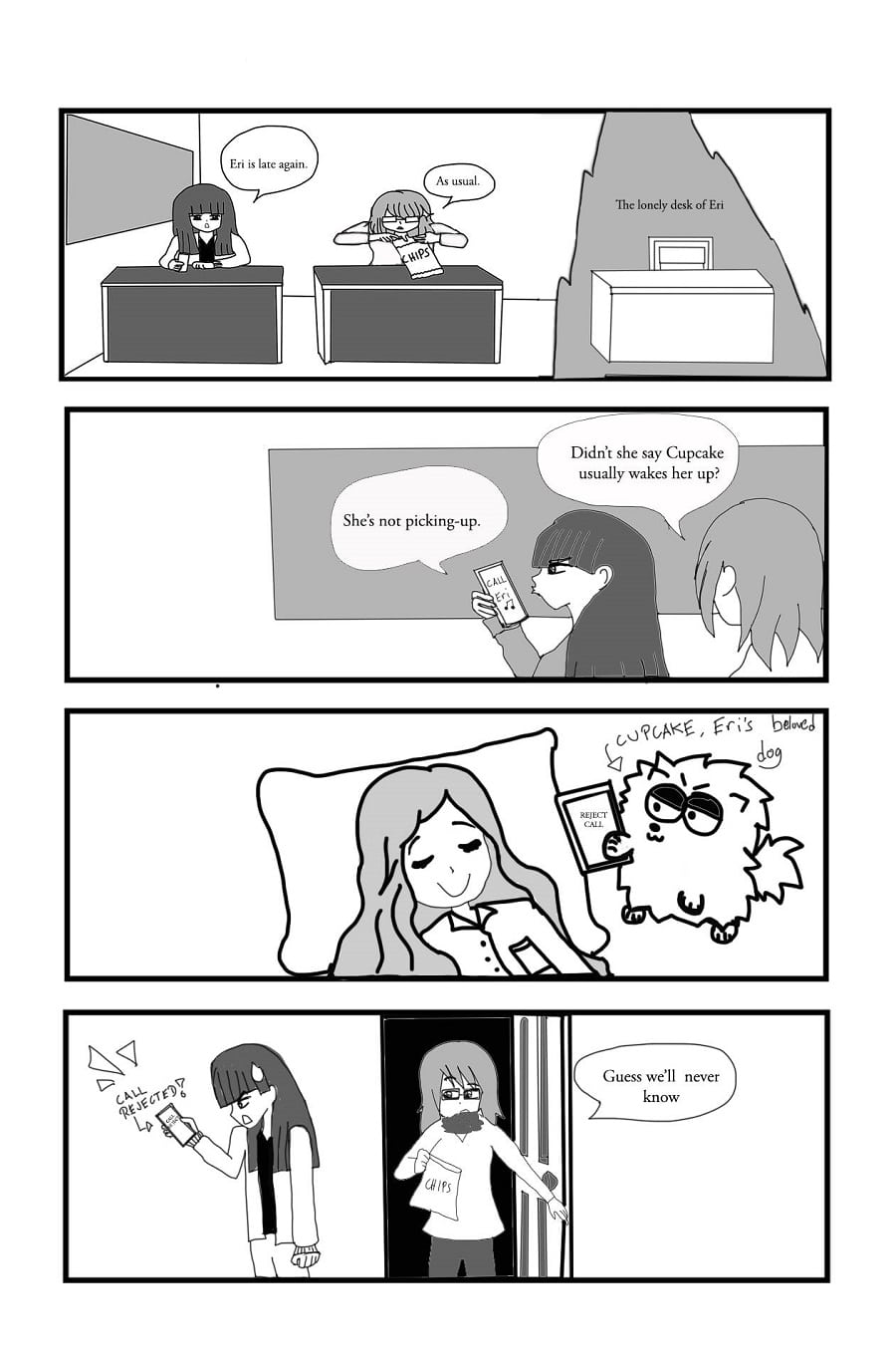 A 4-koma that depicts the daily lives of college irregulars. Read from left to right.