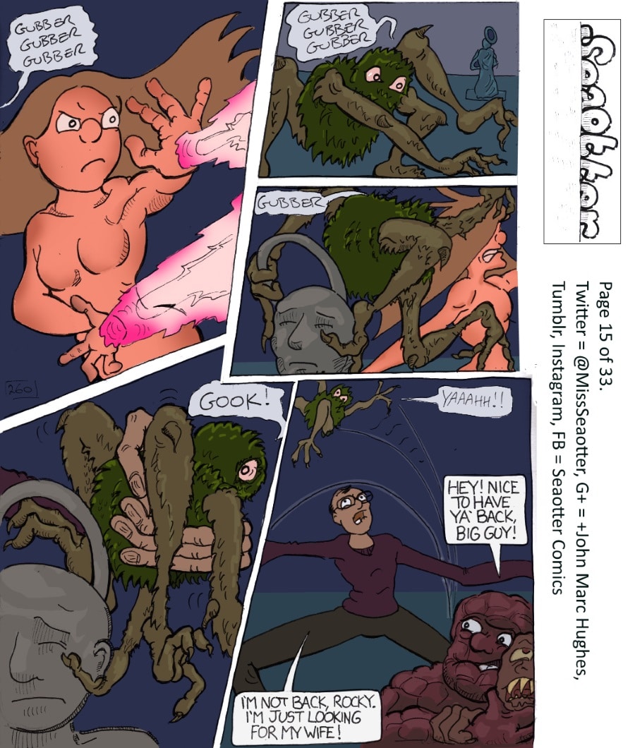 "The Familiar Four" is a superhero story in 33 daily pages, featuring four characters who bear a resemblance to another four (currently unemployed) characters you may have seen elsewhere. Get ready, folks, cos here comes mystery, action, people getting punched through walls, drama, and a few slightly rude words!