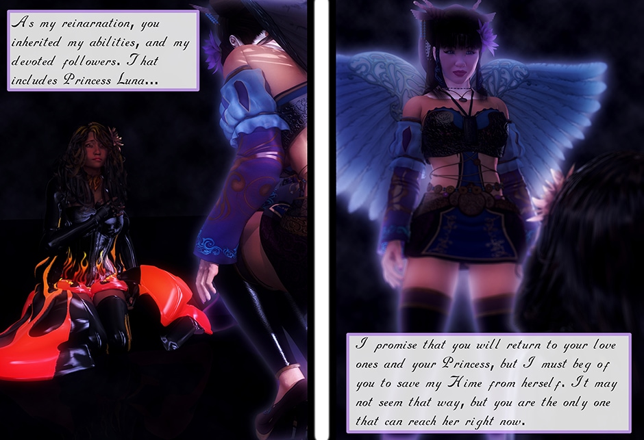 After Confronting Princess Luna in one of her dreams. Lady Maya Doi must now face against The Moon Goddess of Equestria herself and try to convince her that she is the reincarnation of her long lost companion. However, the more the two of them fight each other, more of their memories will come to surface clashing against one another, causing both of their mental stability to deteriorate. This is the continuation The Lunar Eclipse Act I.