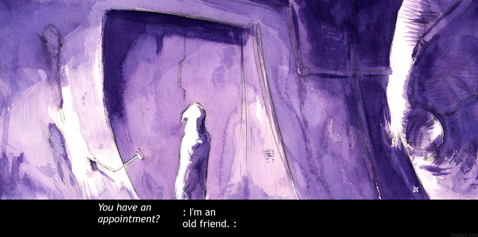 A* comics arrive daily Monday through Friday--although sometimes they don't get finished and uploaded until the wee hours of the next morning, technically speaking. I currently make the pages using traditional watercolor.