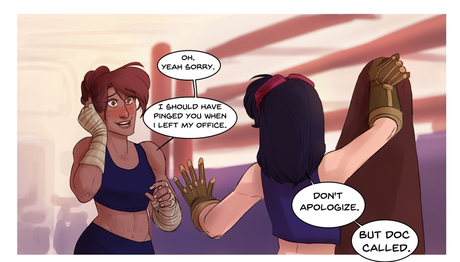 K bears news of a meeting, and some other playful banter. Consider supporting Project Solace on Patreon! http://patreon.com/leishariddel?ty=h