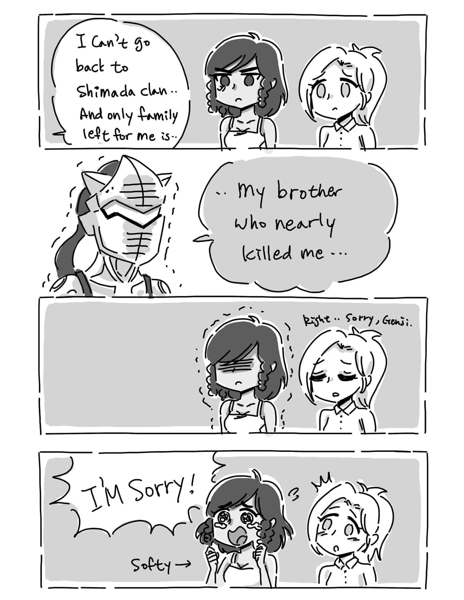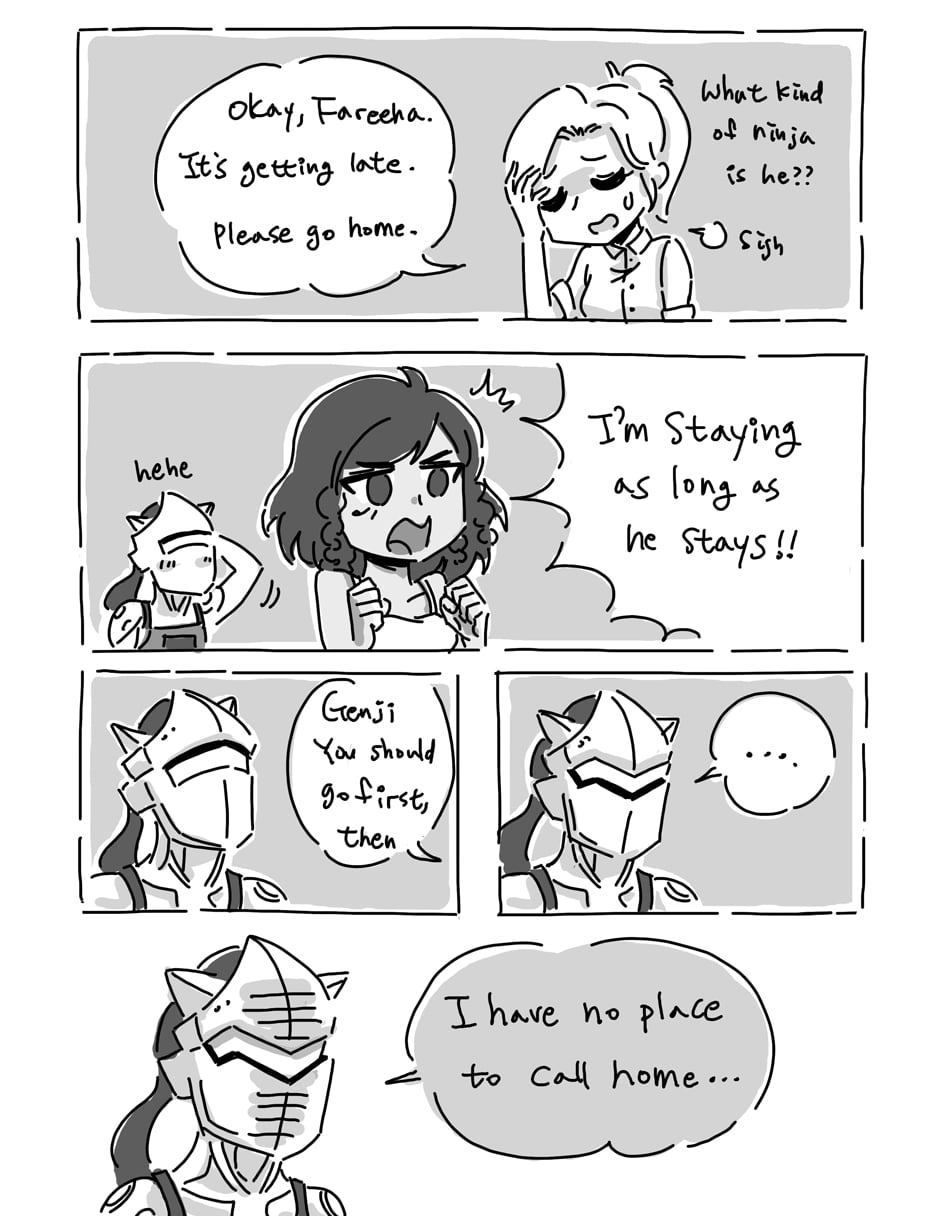 Pharah is not happy with Genji staying at Mercy's...