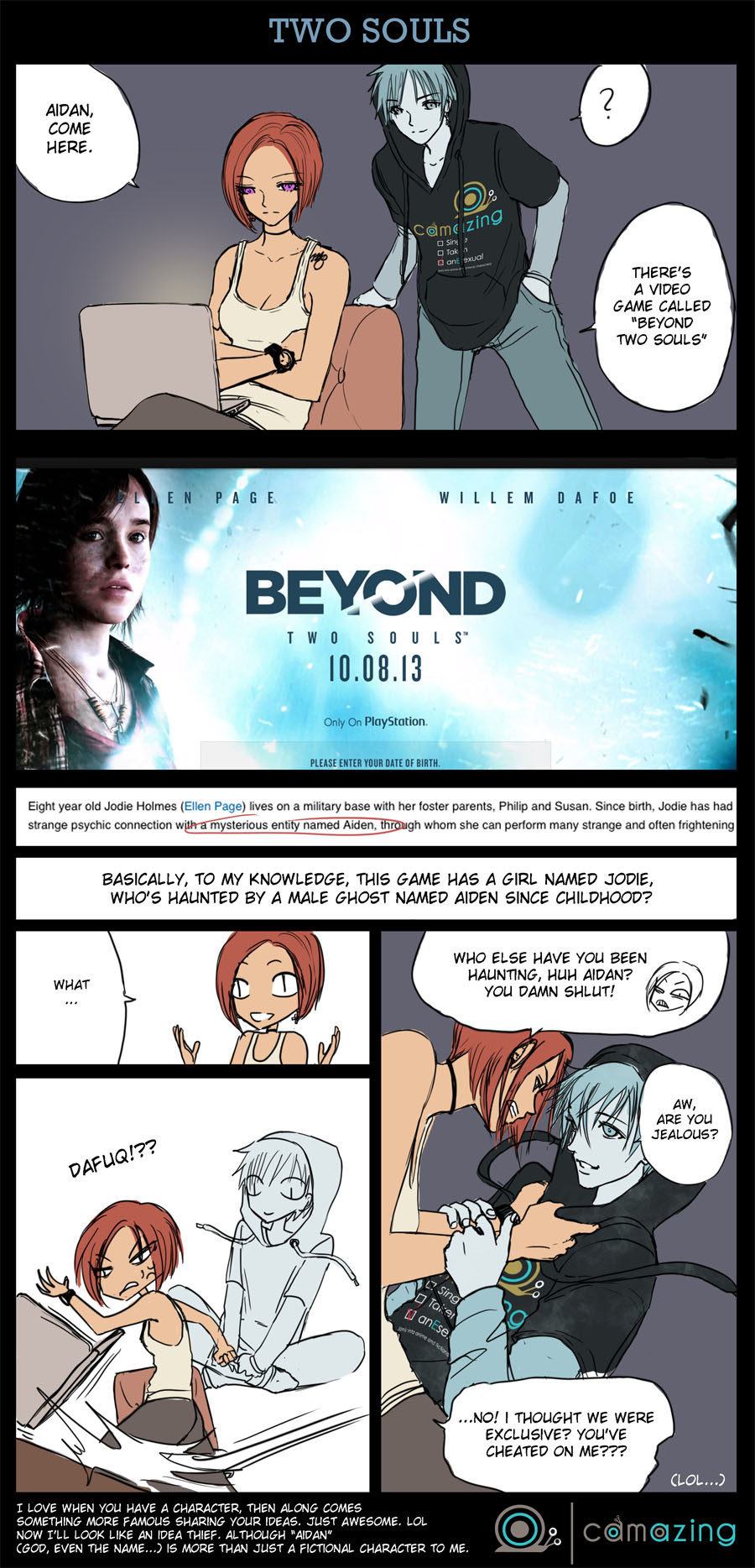 This comic strip was created October, 2013. http://camazing.deviantart.com/art/Two-Souls-407527214 on my DA. Yeah last year.