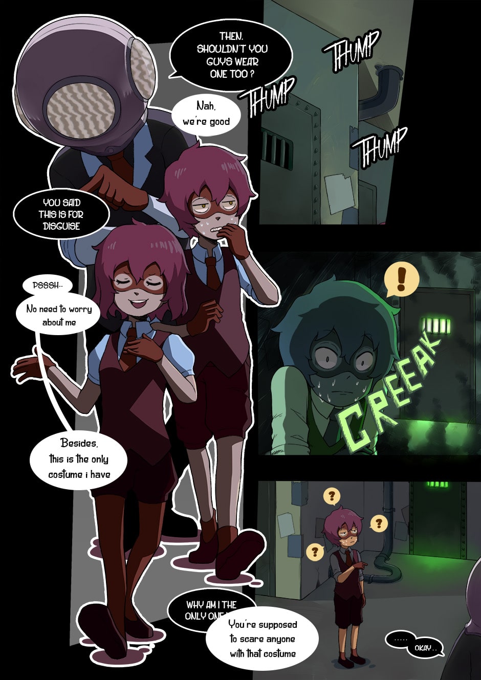 sorry for the long absence ! i've been working on multiple projects at the same time, i don't even have time to open tapastic ._. but here it is ! intoducing Bass, Pam, and the big guy, Elliot !