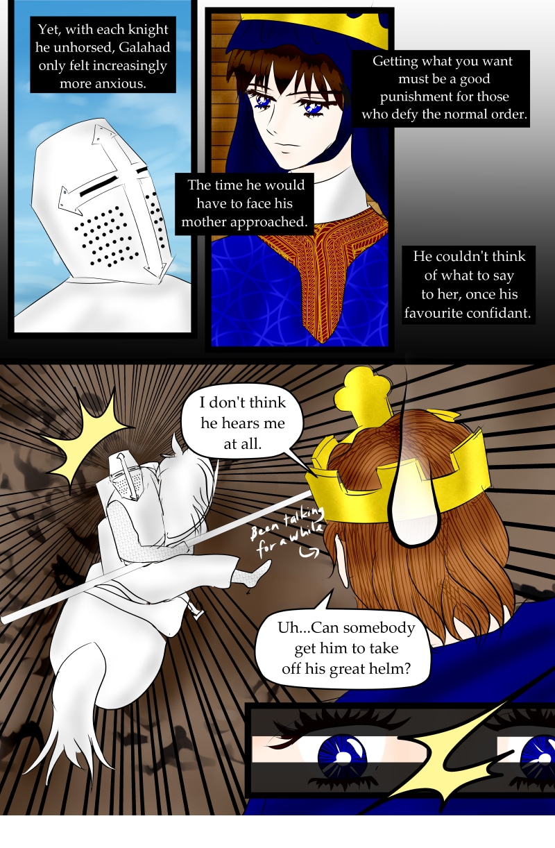 Sir Galahad, the most perfect of knights, destined to achieve the Holy Grail, fails at the task. Why? The Archangel Gabriel himself will tell us the reason, and why the one destined to be the Holy Grail Knight called himself, 'Il Chevalier Mesfais'- the Knight who Sinned. (Updates every 2 weeks.)