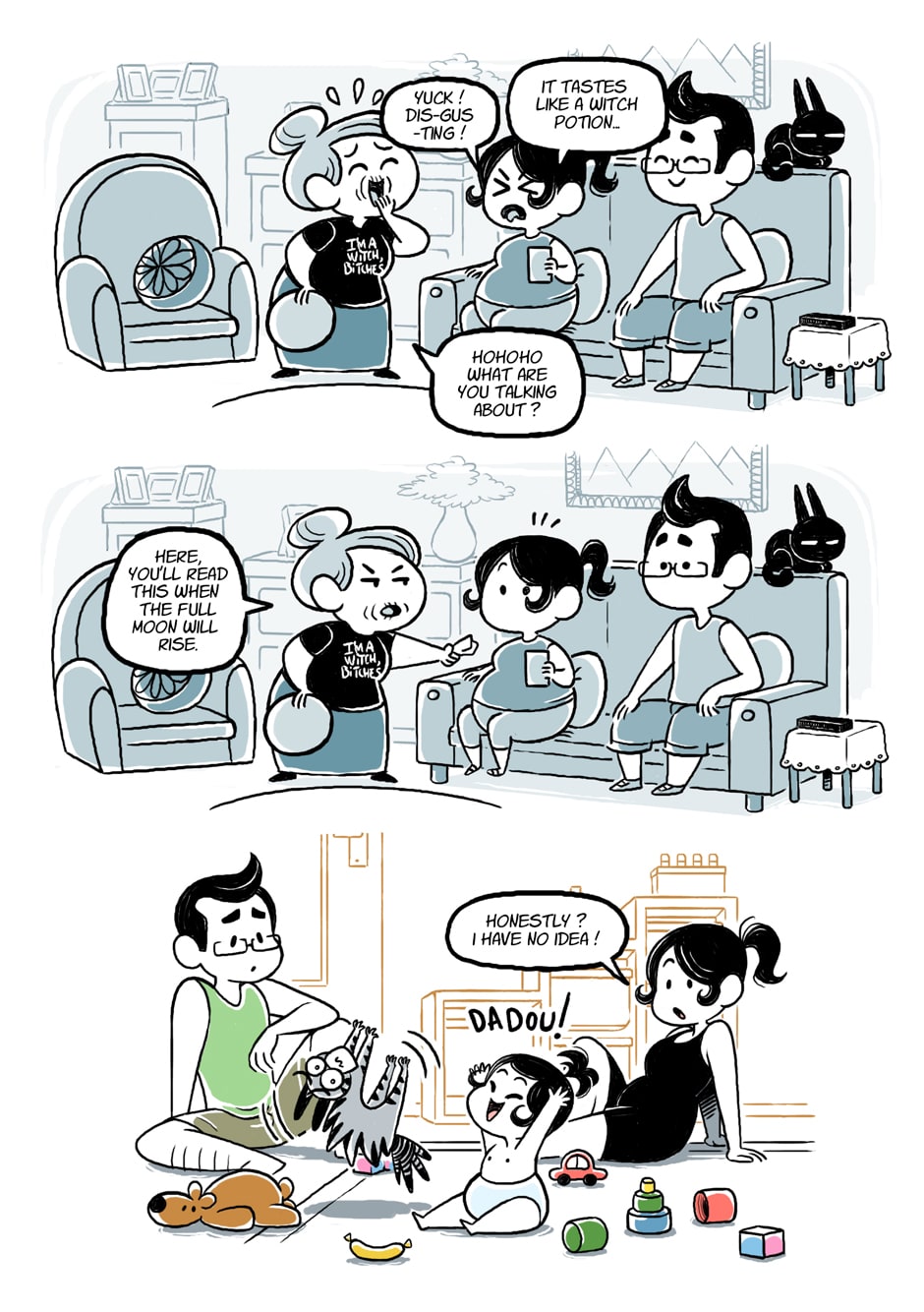 Grandma, that's awful! You can't wear shirts like that around a baby!