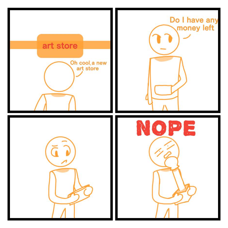 yeah i have money. it just happens to look like paint, pencils, markers, brushes and new sketchbooks