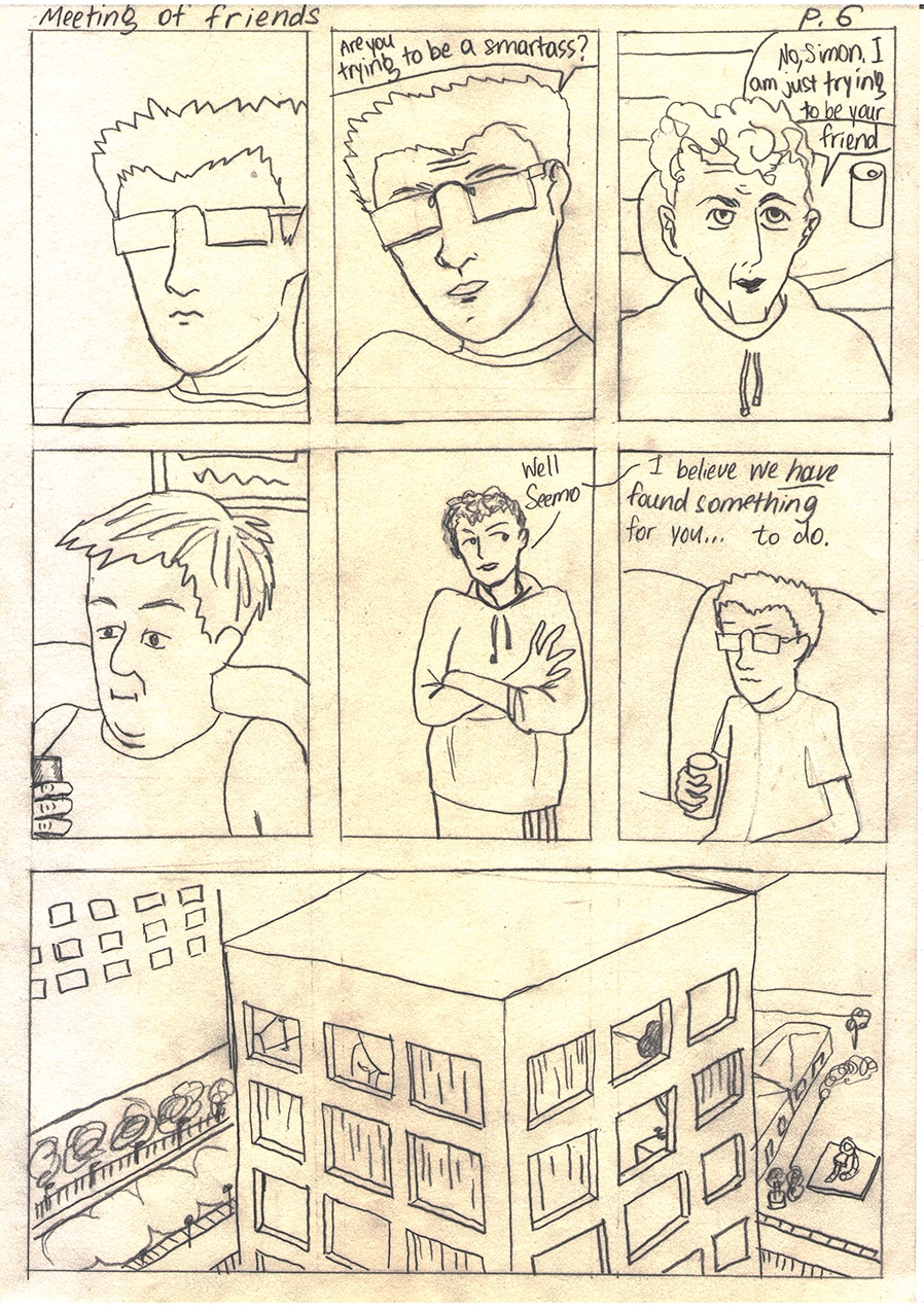 Hard Knocks is a story of a nerdy boy who journeys through bullying, emotional struggles, and complete insanity as he learns to live on his own in the city. Sketchy Comics is drawing stories in a very quick and sketchy manner. Hard Knocks is the series.