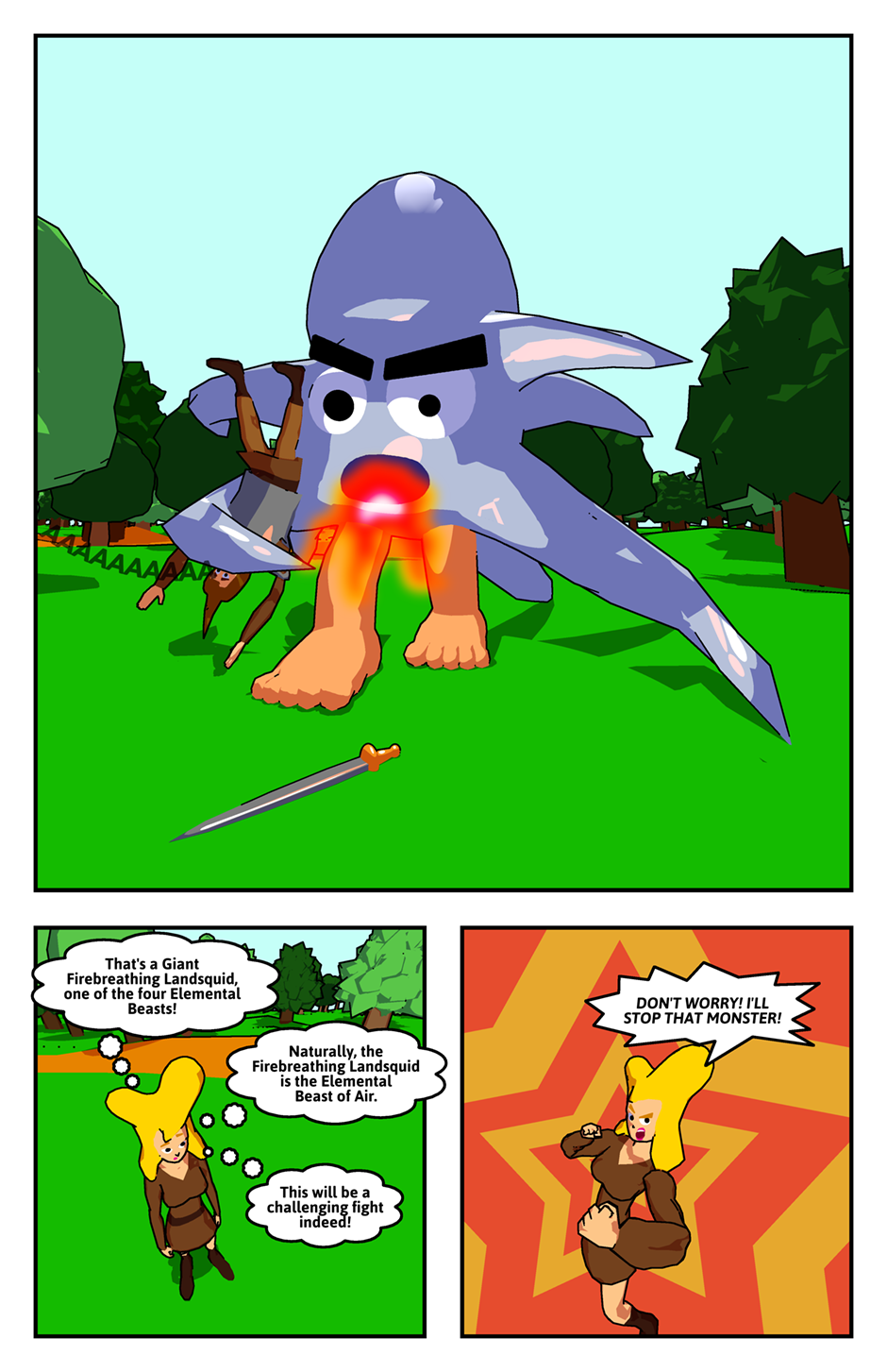 Giant Firebreathing Landsquid Attack!