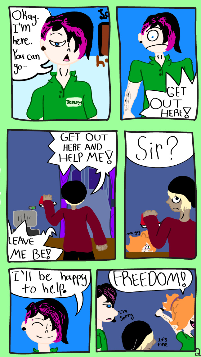 Meet Jeremy. He's way more competent. Also that's a phone in her hand in the last panel, just so we're clear.