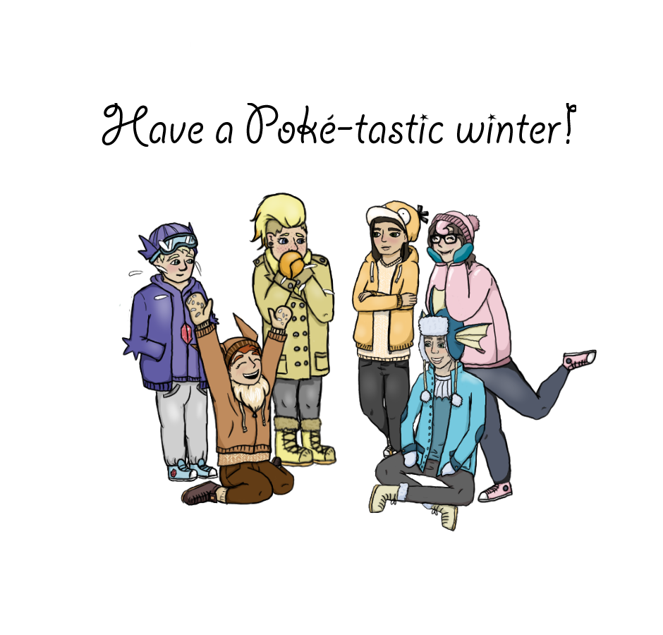 I'm totally over this 'late-summer' thing going on here in Denmark, this week, all days have been about 28-25 degrees C. Here's a drawing of all the 'role-players' as their favorite pokémon; Winter themed. + Special guest: Christian, Pauline's little brother. Can you guess who the different people and Pokémon are?