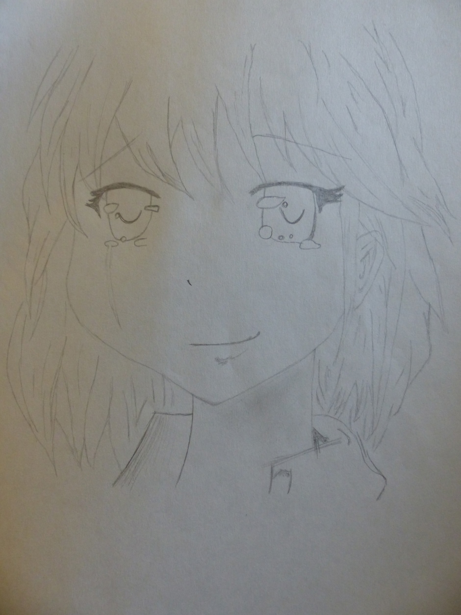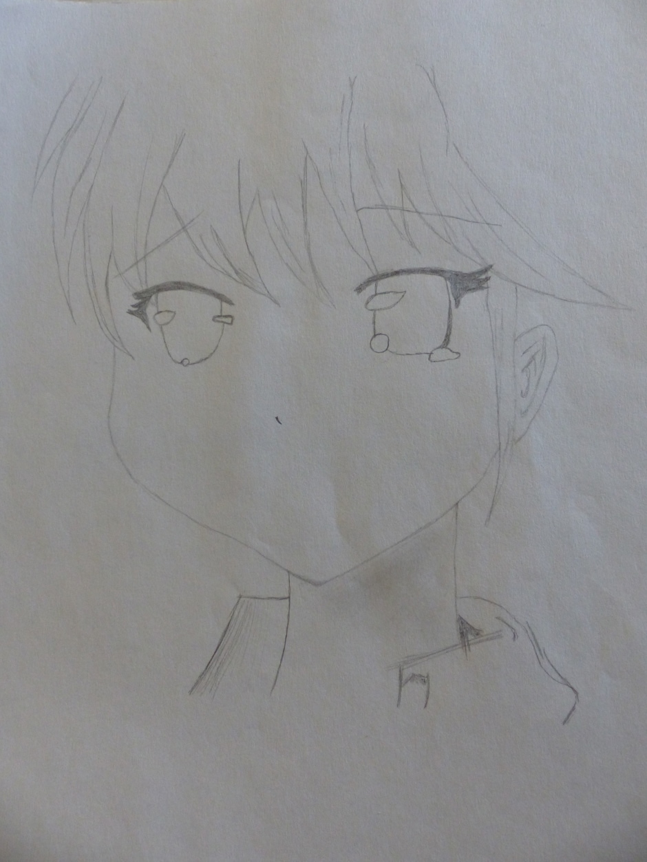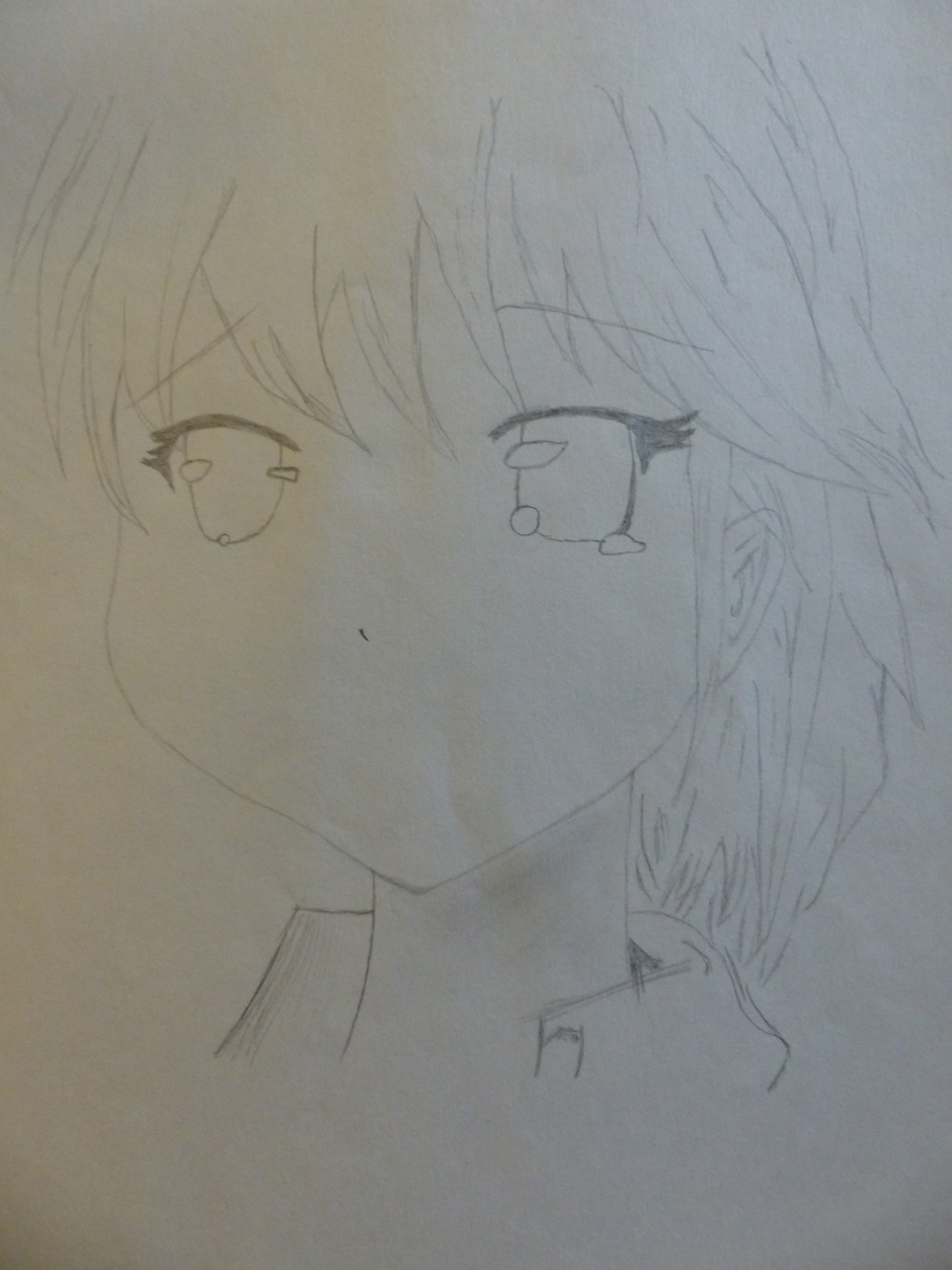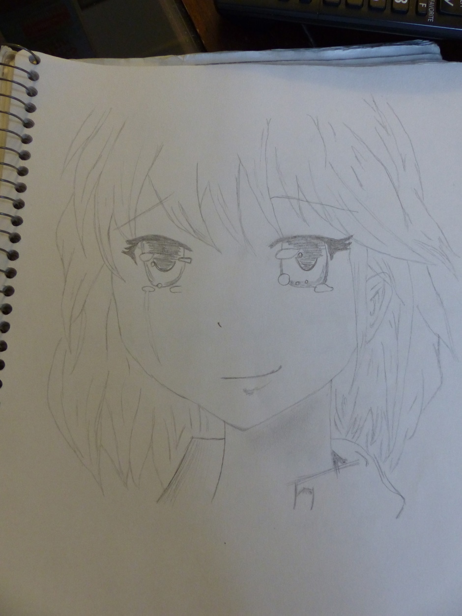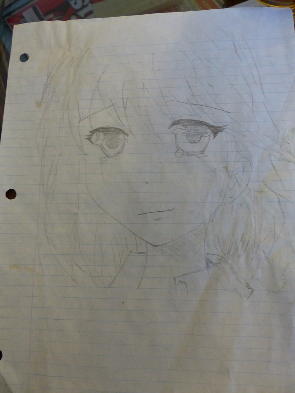 I drew the original on lined paper in class. It ended up at the bottom of my locker all crumpled up, so I decided to re-do it! Here is the process and both the original and re-done copies!
